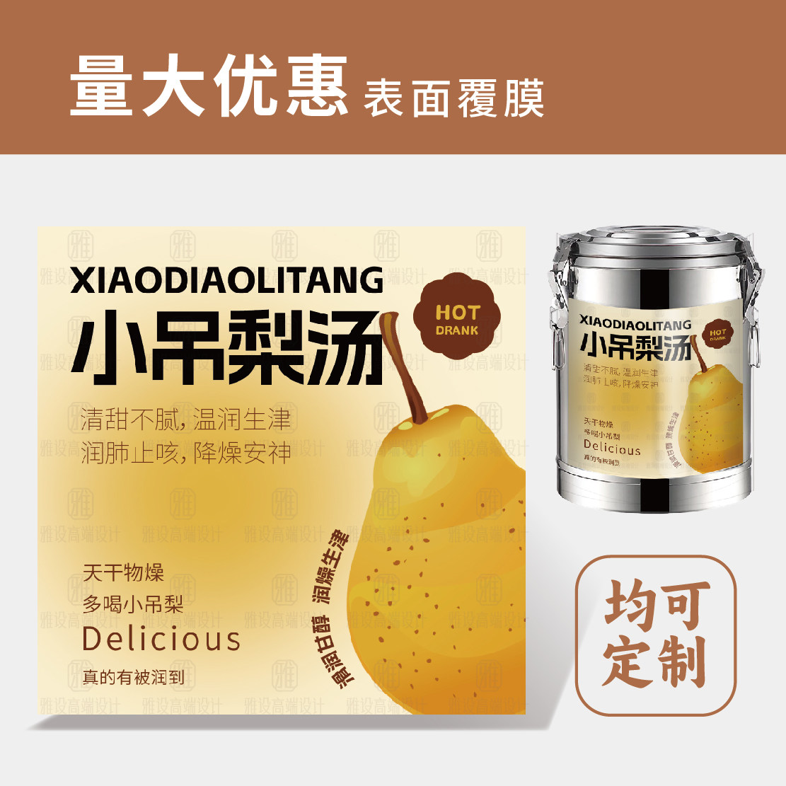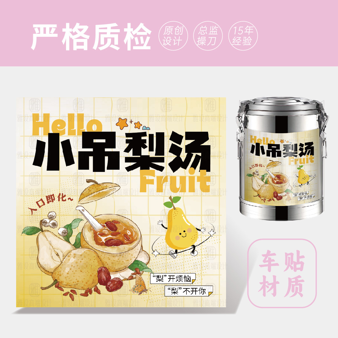 冰糖雪梨保温桶贴纸小吊梨汤鲜炖烤梨广告海报自粘防水装 饰画摆摊