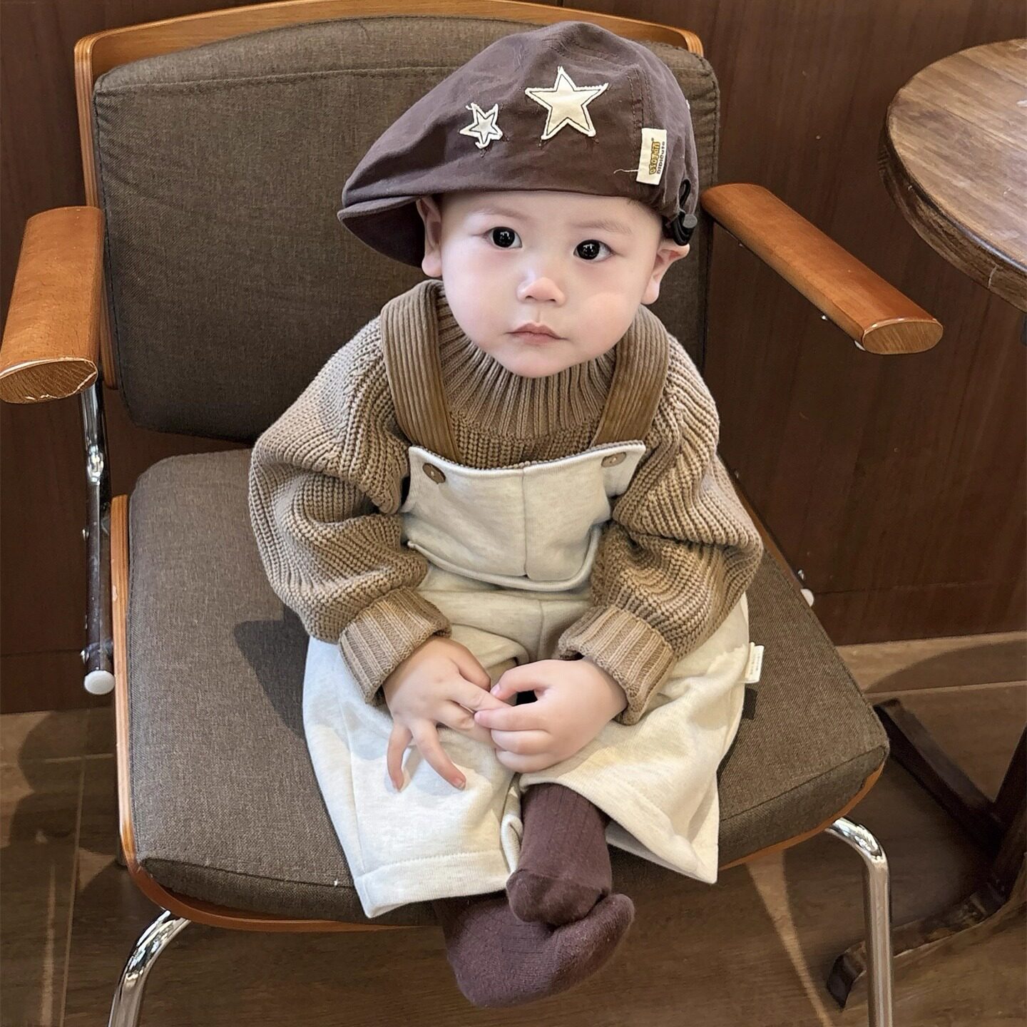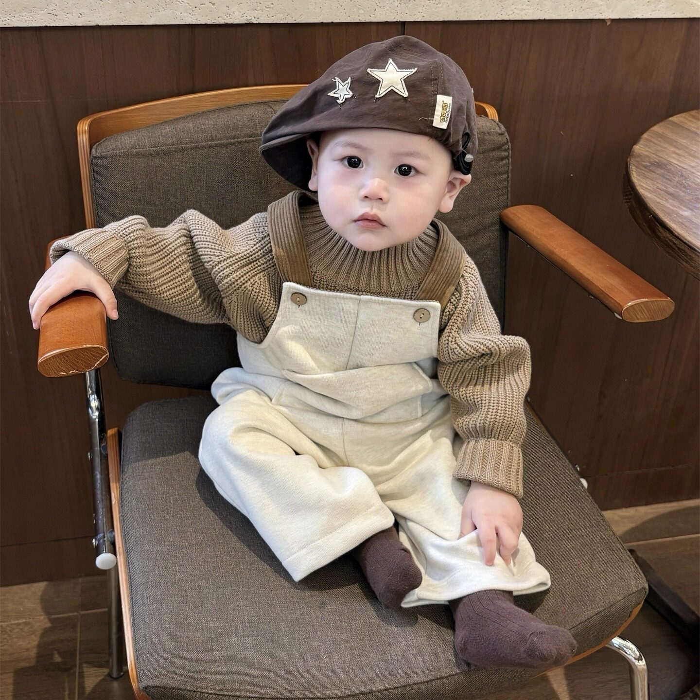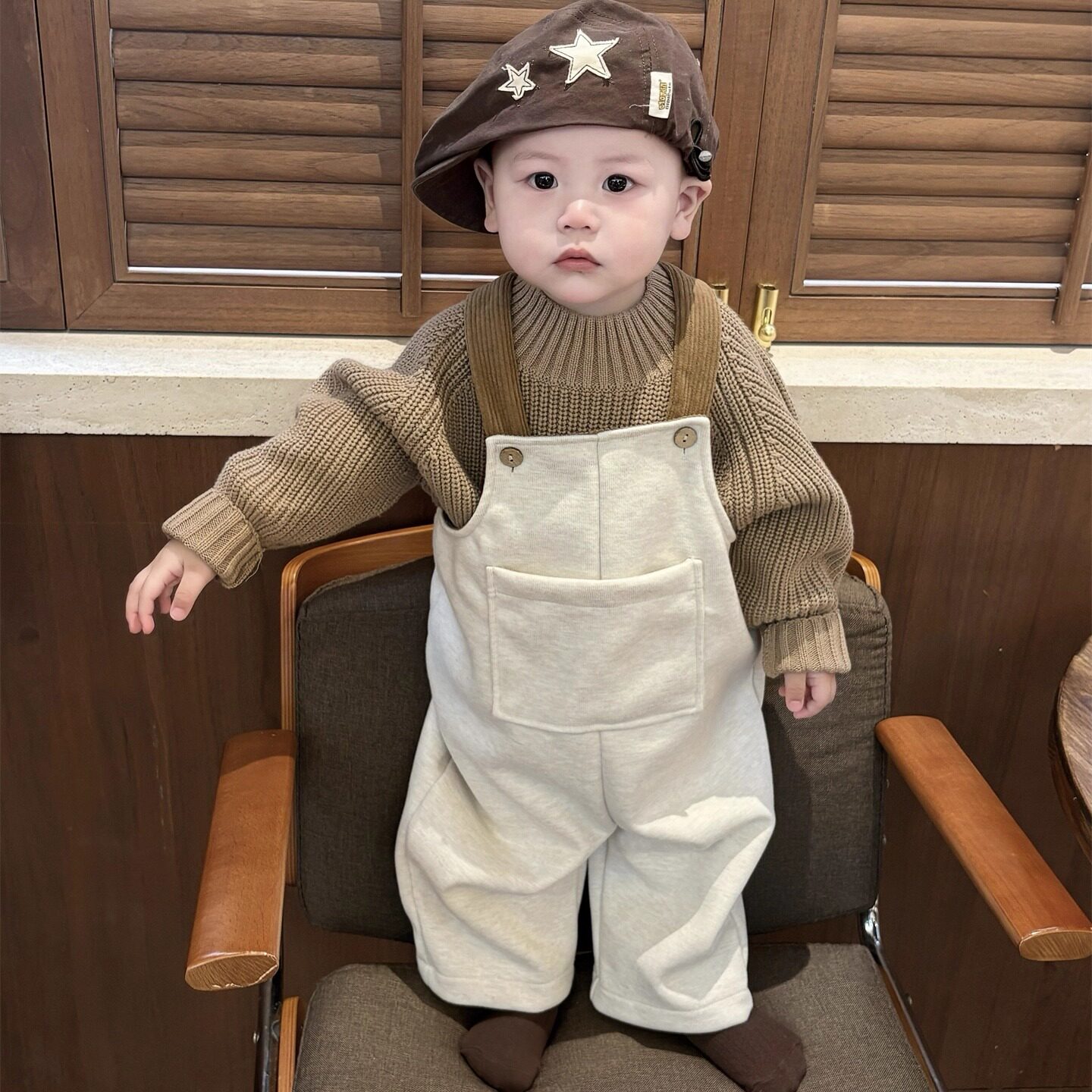 超韩洋气婴幼儿背带裤 婴儿冬装 男宝宝衣服秋冬款 2025新款 两件 套装