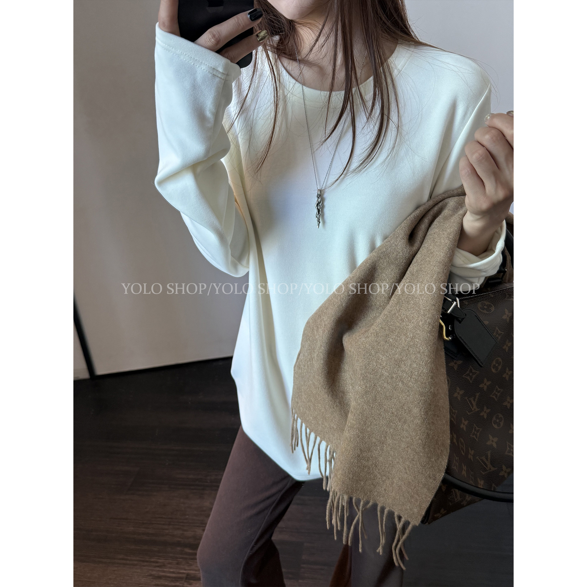 纯色圆领长袖 修身 打底衫 韩版 显瘦纯棉百搭上衣 女早秋冬新款 基础款