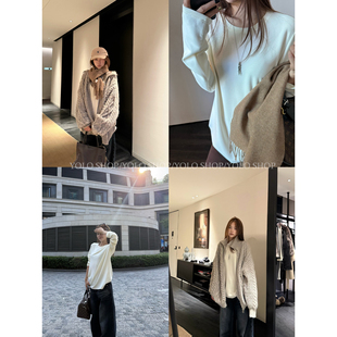 小立领基础款 T恤2025秋冬修身 上衣 女半高长袖 白色德绒内搭打底衫