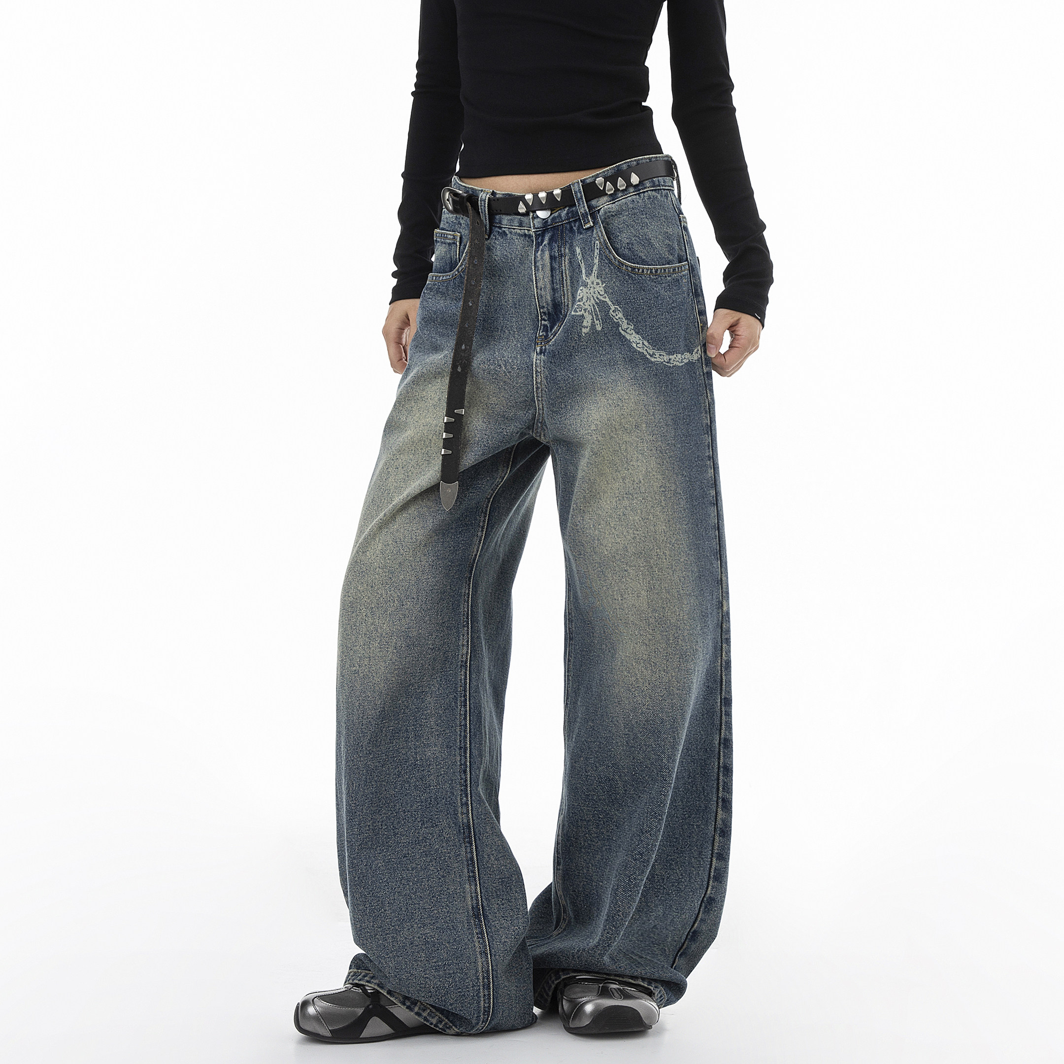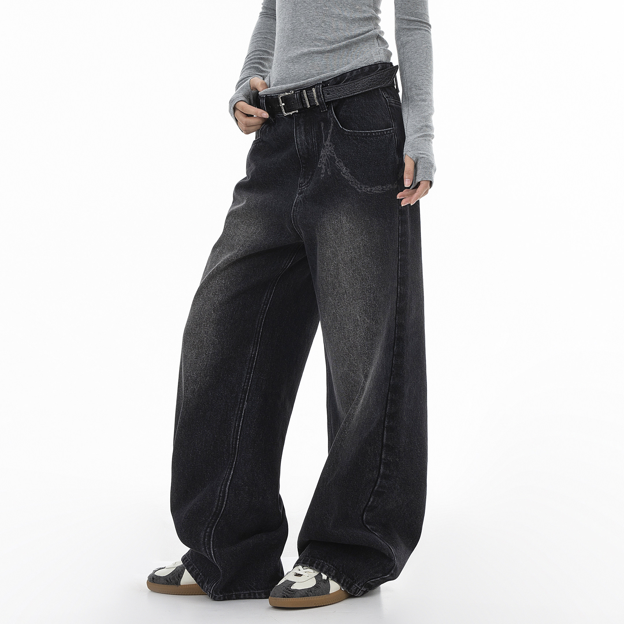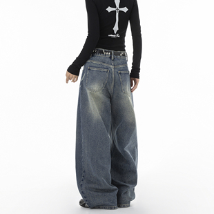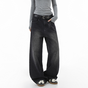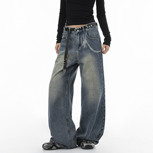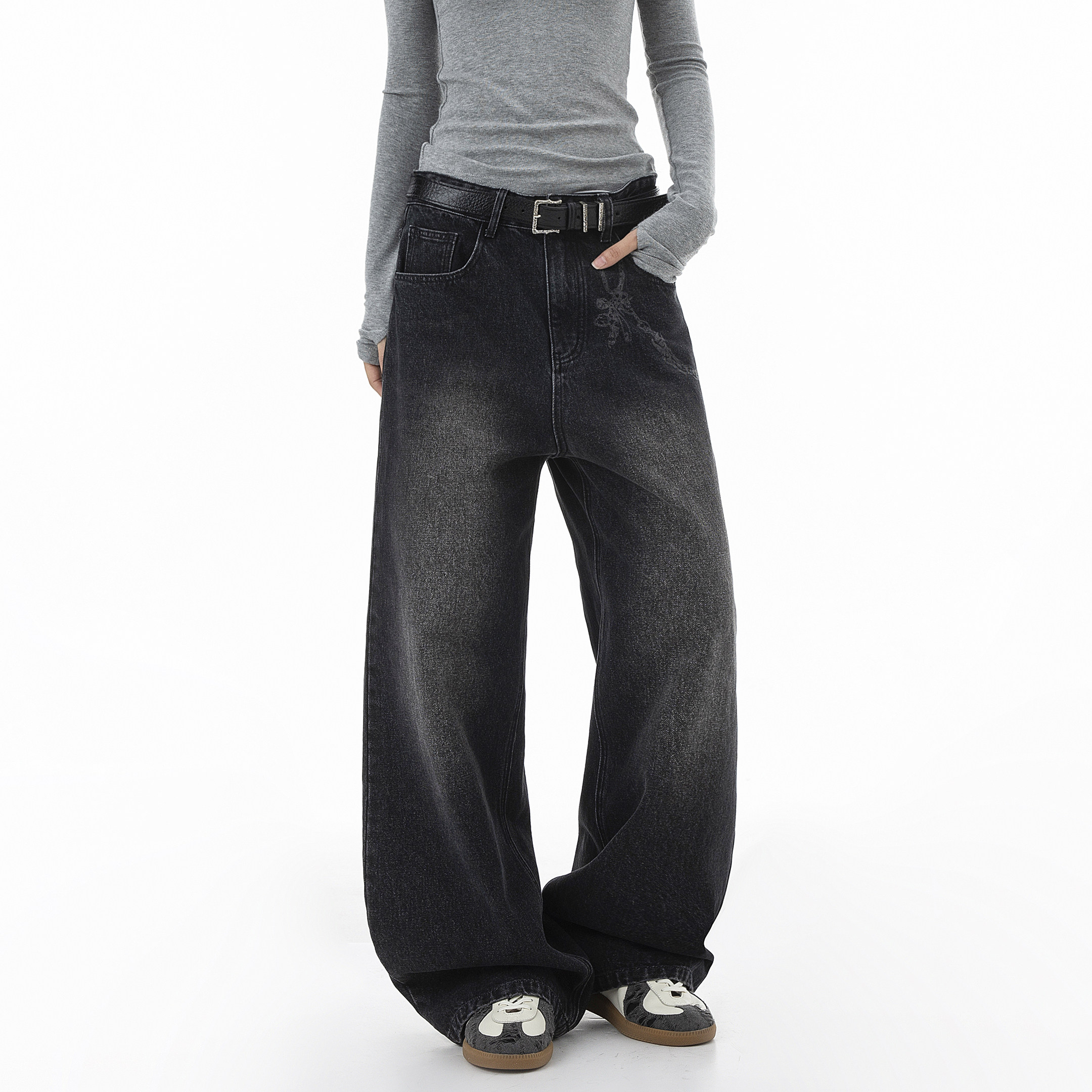 复古水洗牛仔裤 女新款 宽松直筒裤 ICH 百搭休闲裤 美式 阔腿裤 MODE
