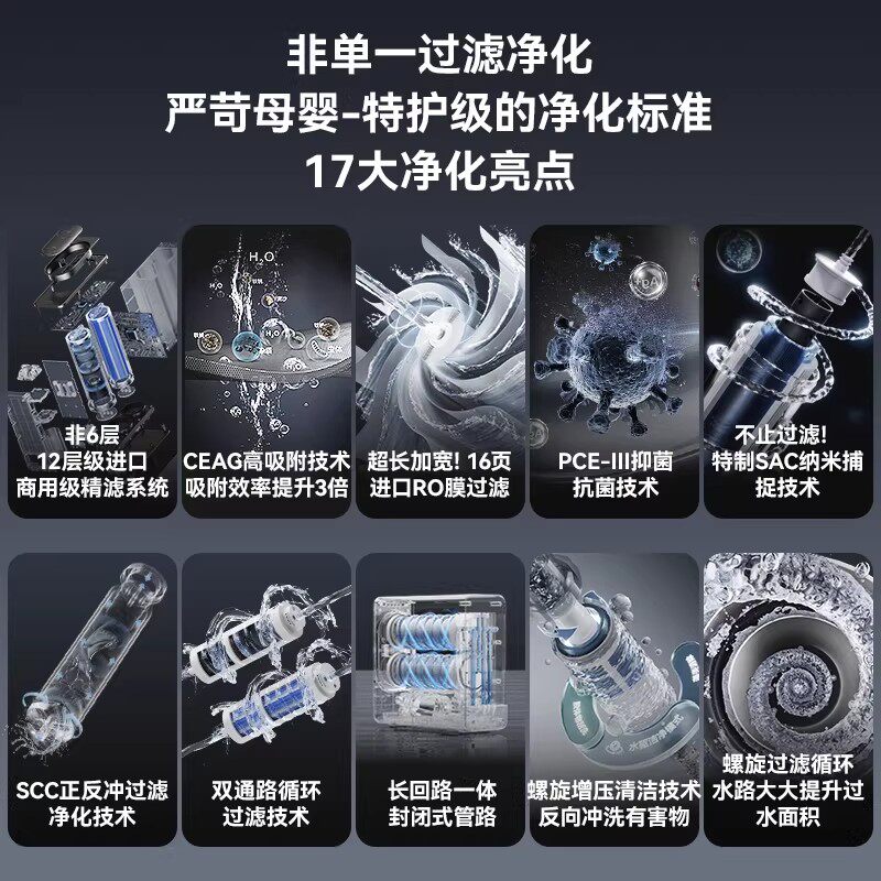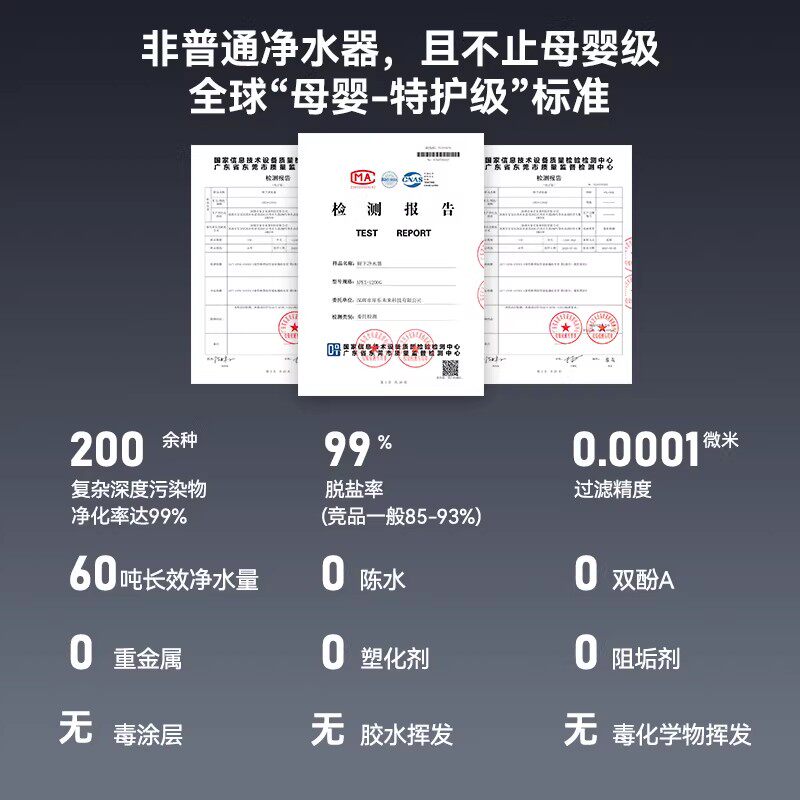 宫菱净水器家用直饮机厨下自来水过滤直饮家用0阻垢剂净饮机1200G