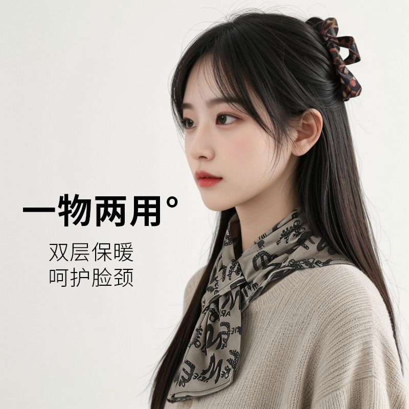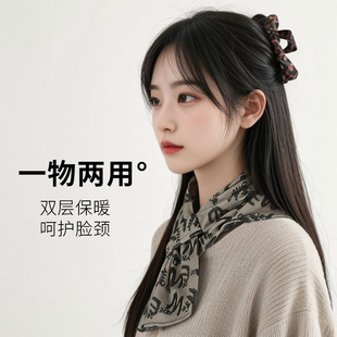 雪花双面针织围巾女秋冬季 韩系氛围感加厚保暖高级感围脖复古披肩