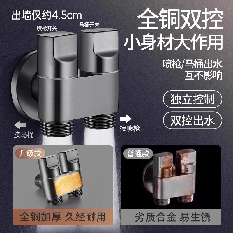 枪灰色高压马桶伴侣冲洗喷枪一进二出家用厕所全铜角阀妇洗喷头