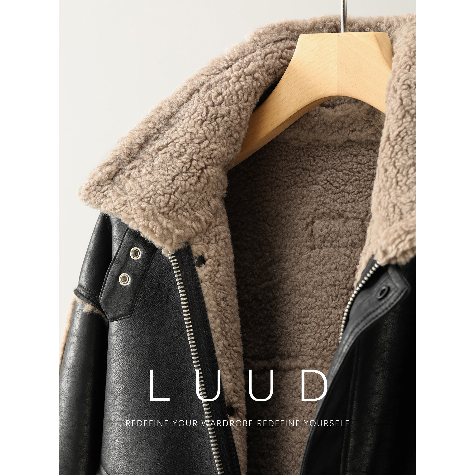 宅宅athome 复古仿麂皮外套翻领宽松休闲上衣夹克 藤姐同款