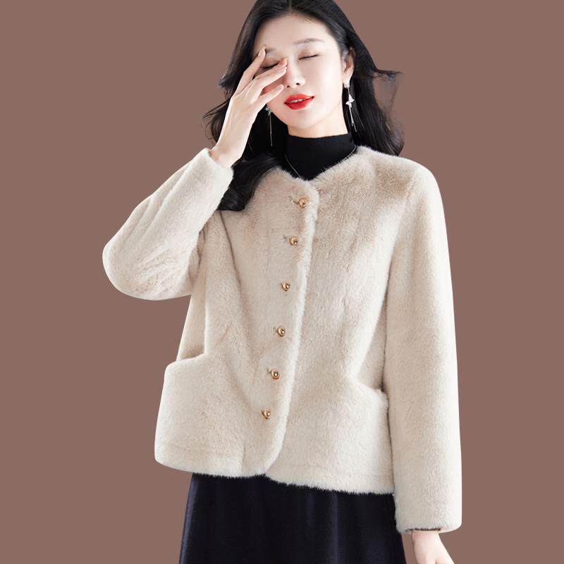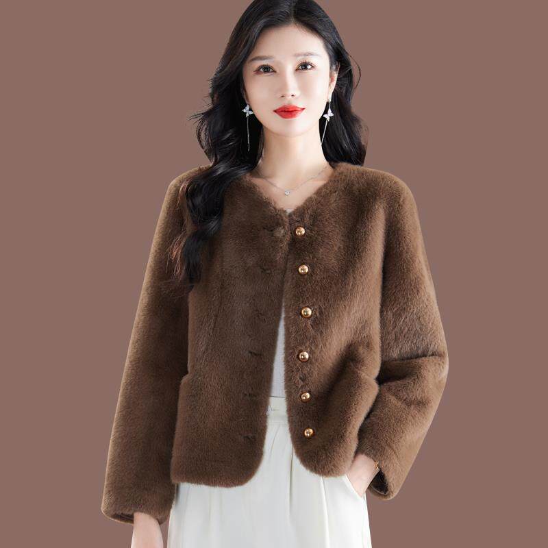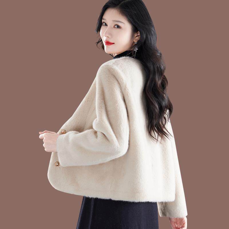 时尚 短款 皮毛一体仿皮草毛毛外套女 加厚水貂绒开衫 2025秋冬新款