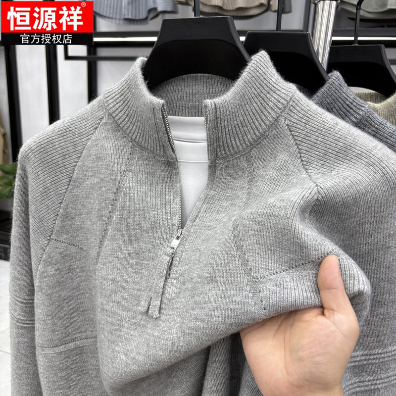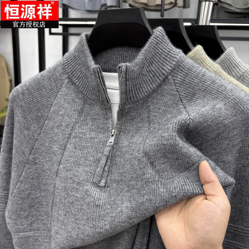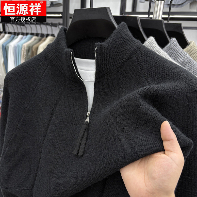 针织衫 潮流保暖立领羊毛衫 秋冬季 阔版 男 新款 恒源祥半拉链毛衣男士