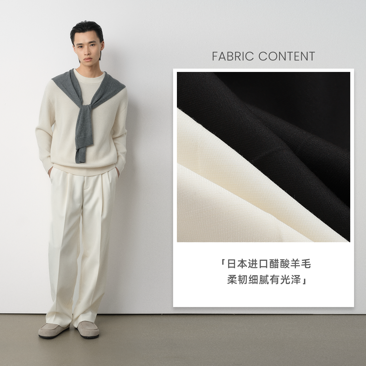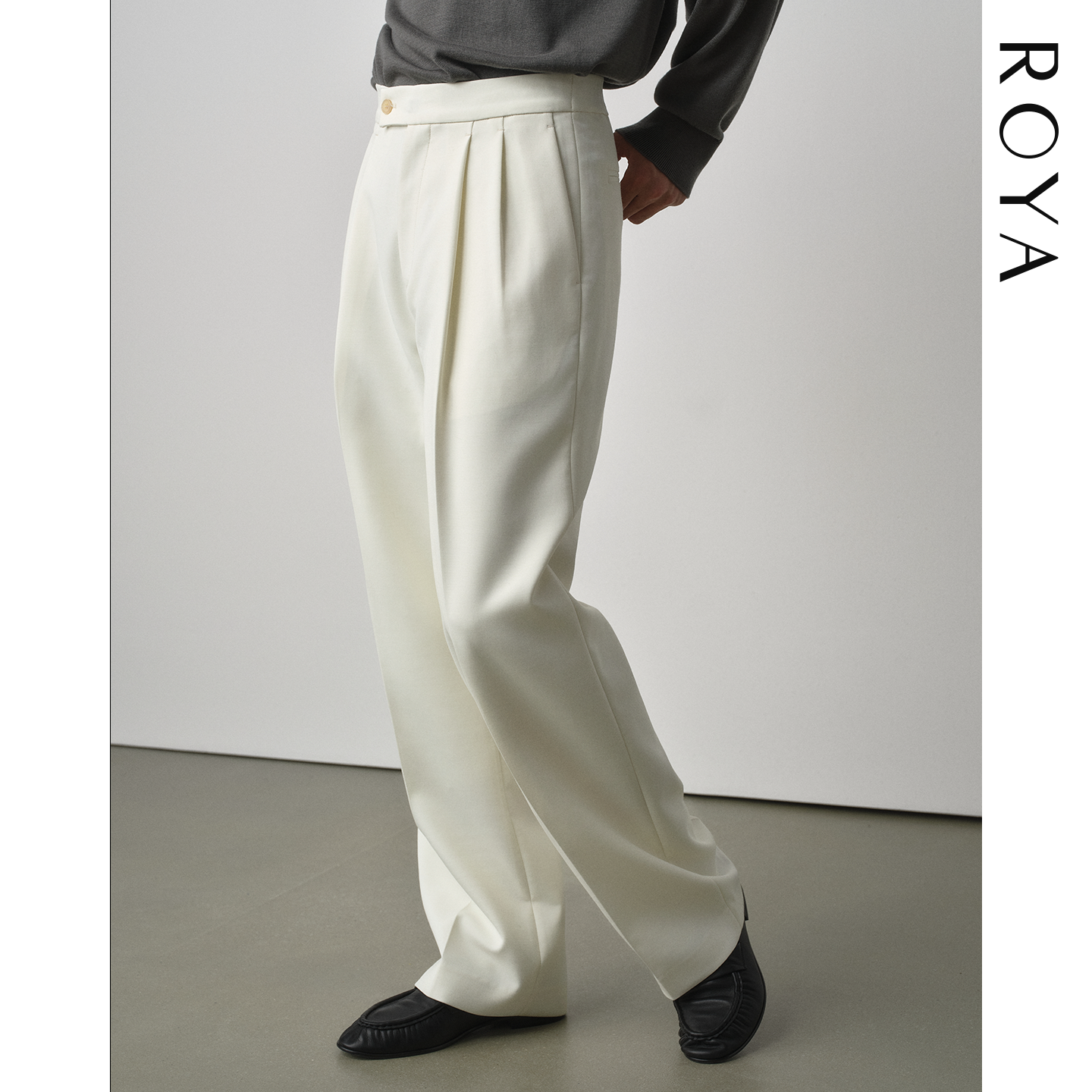 长裤 半松紧腰直筒微阔松弛感休闲西装 进口醋酸羊毛西裤 ROYA