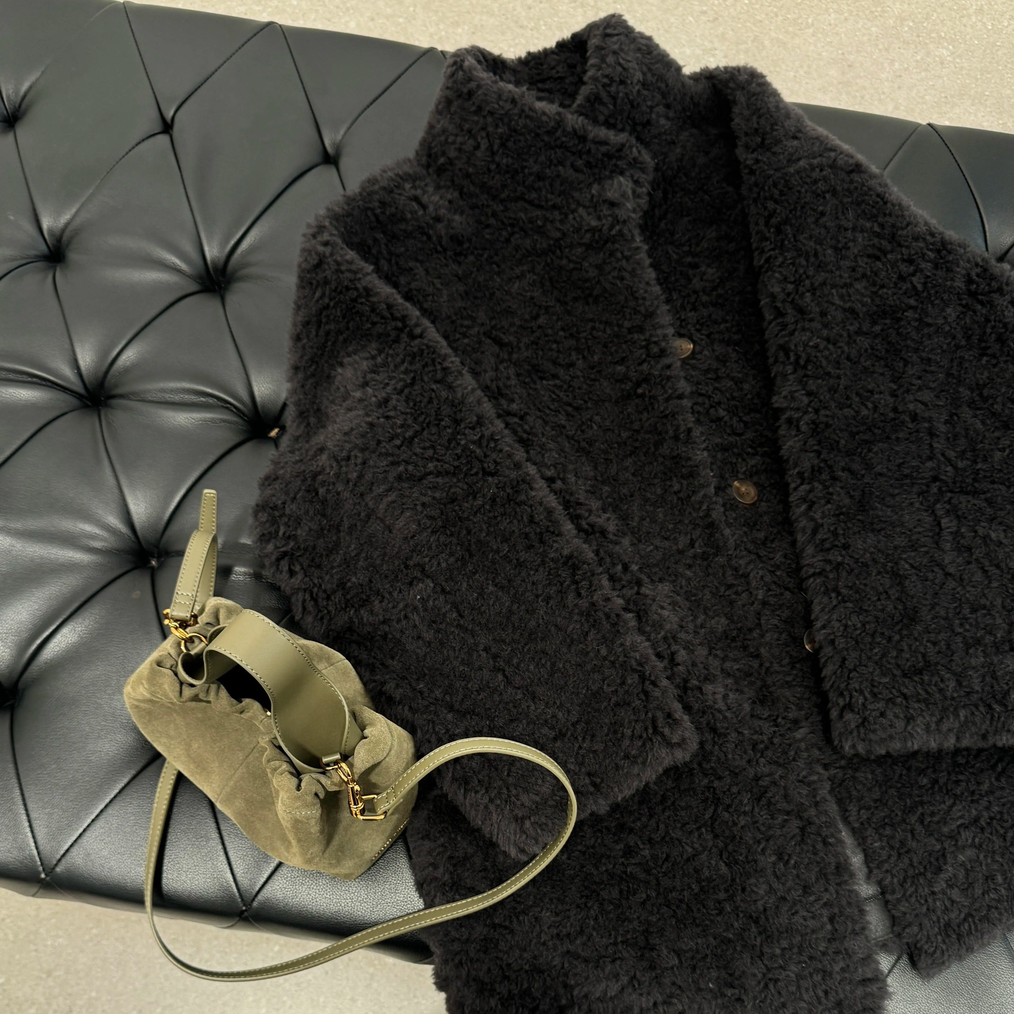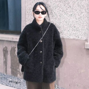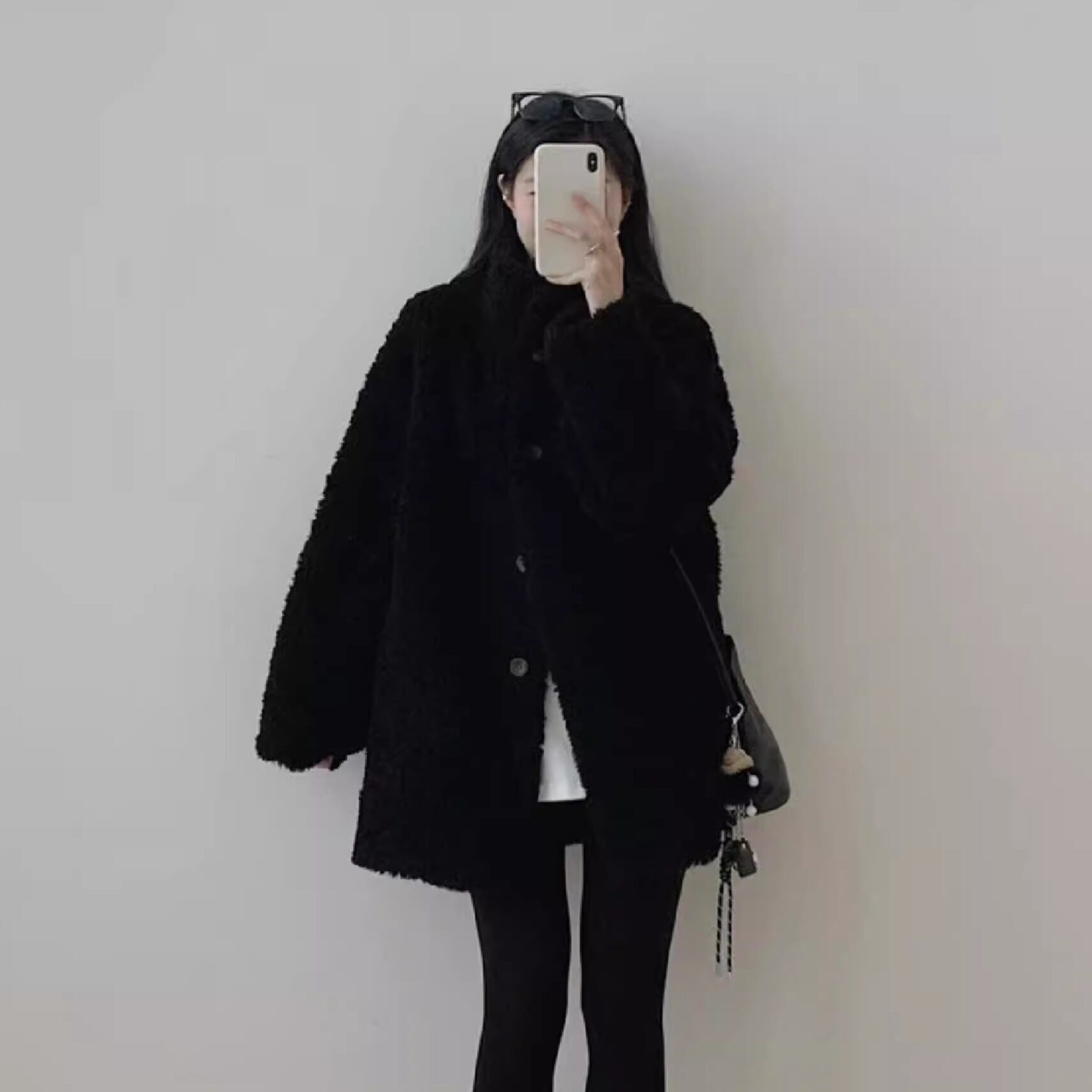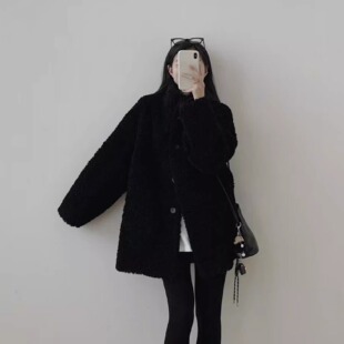 黑色羊羔毛外套女冬加厚环保皮草宽松慵懒厚外套韩系毛毛保暖大衣
