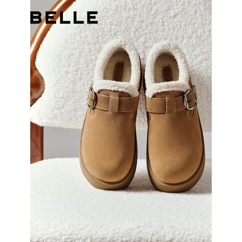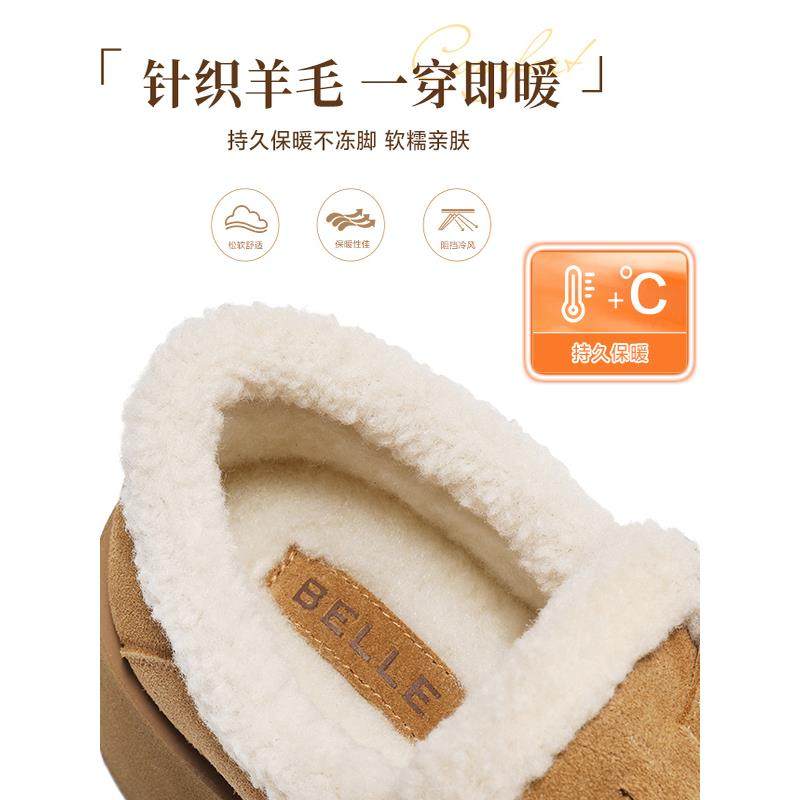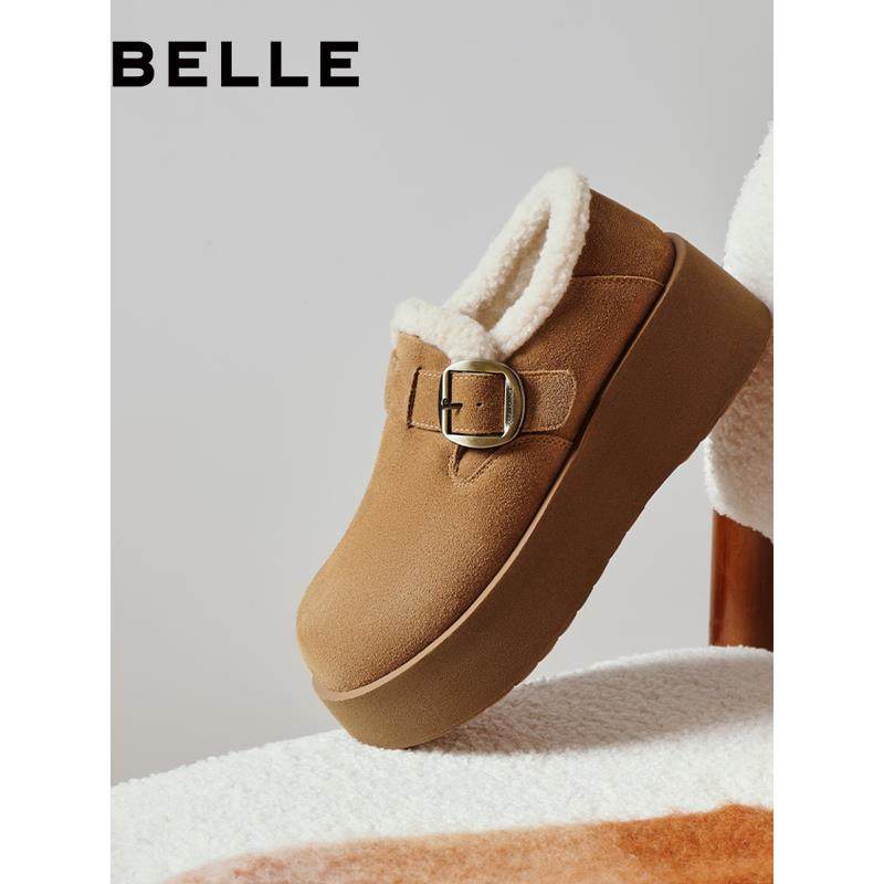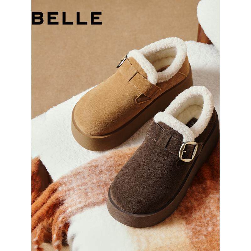 雪地靴E4S1 百丽厚底加绒乐福鞋 2025冬新单鞋 女鞋 E4S1D 全包勃肯鞋