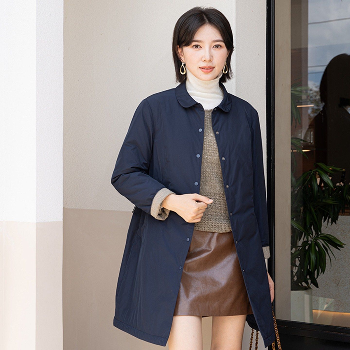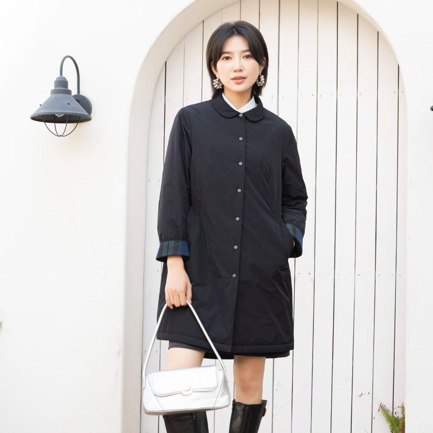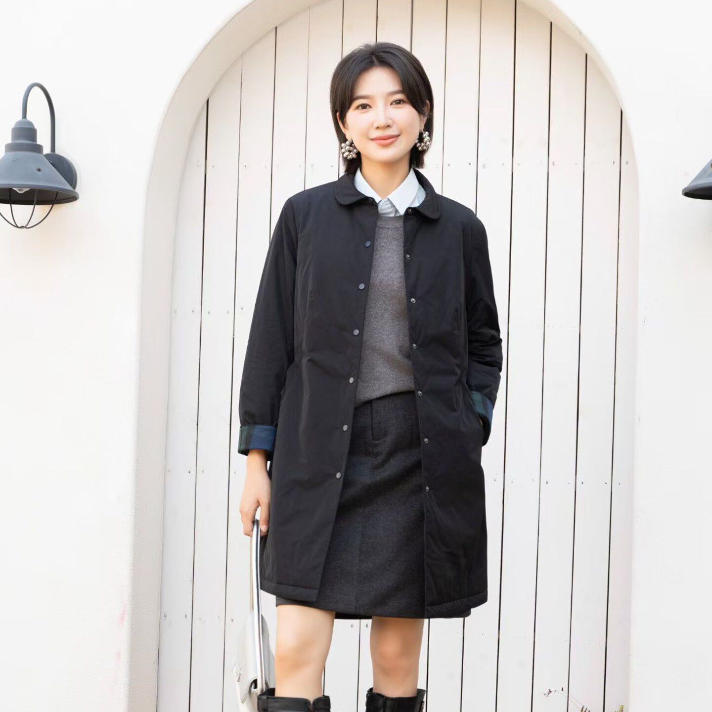 夹棉女风衣外套 翻领单排扣通勤简约中长款 6068 新款 YUN韫2025冬季