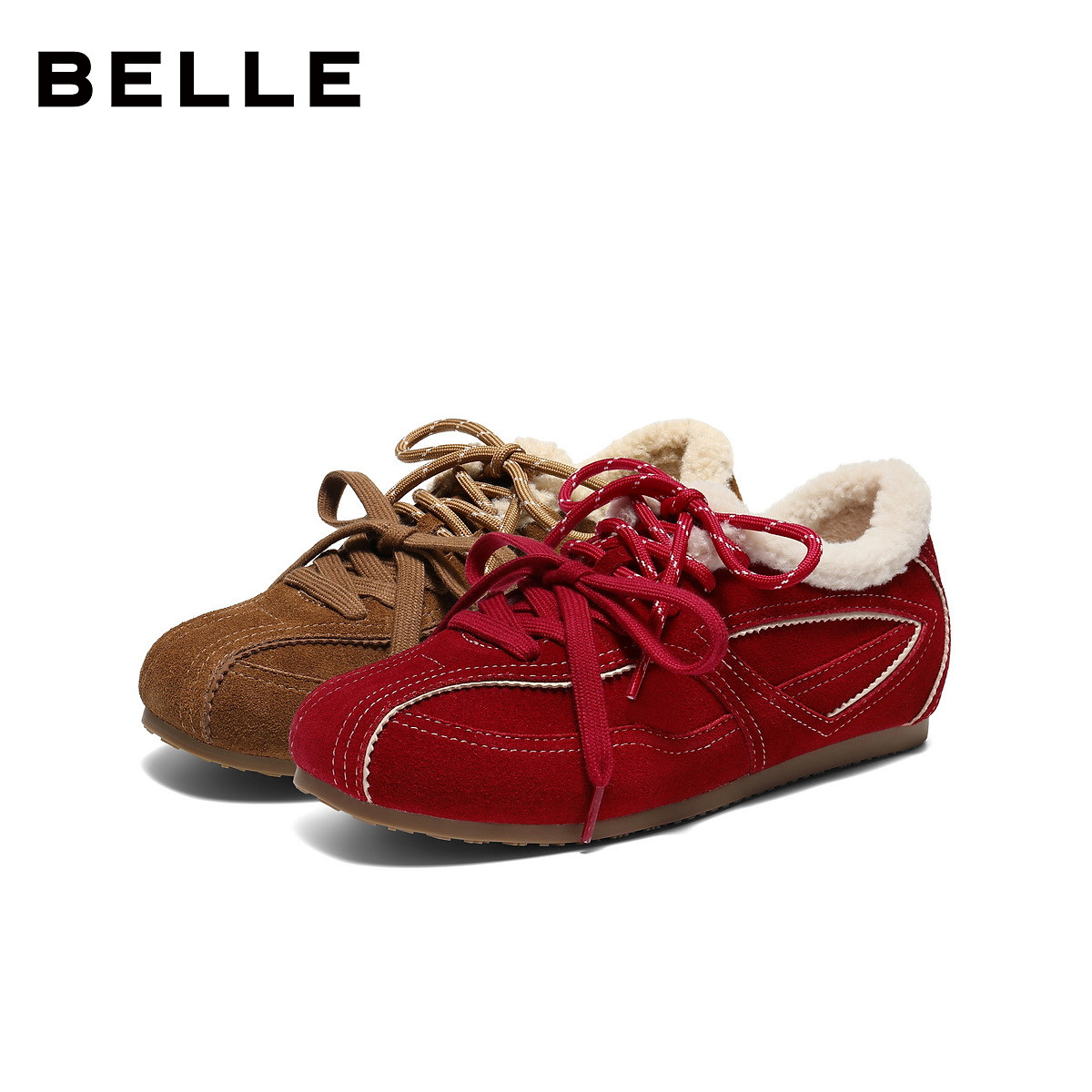 女新年红色加绒运动休闲鞋 百丽跳跳糖德训鞋 B2950预 马年系列