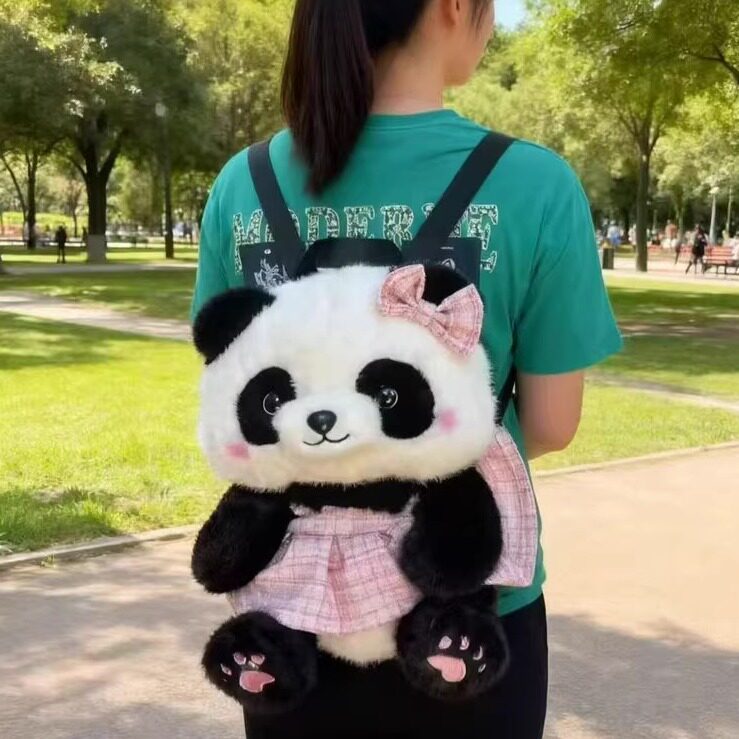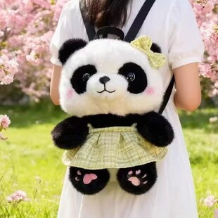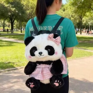 可爱熊猫小香风裙子双肩包女幼儿园儿童卡通百搭毛绒玩具公仔背包