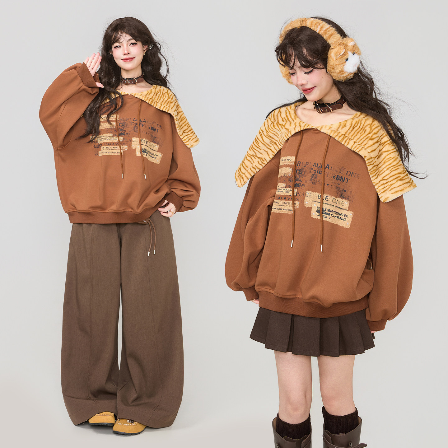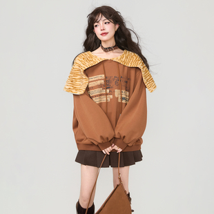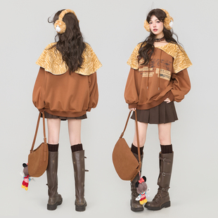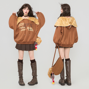 KEIKO 乡野风披肩连帽卫衣女2026早春酷感小众加厚外套上衣 美式