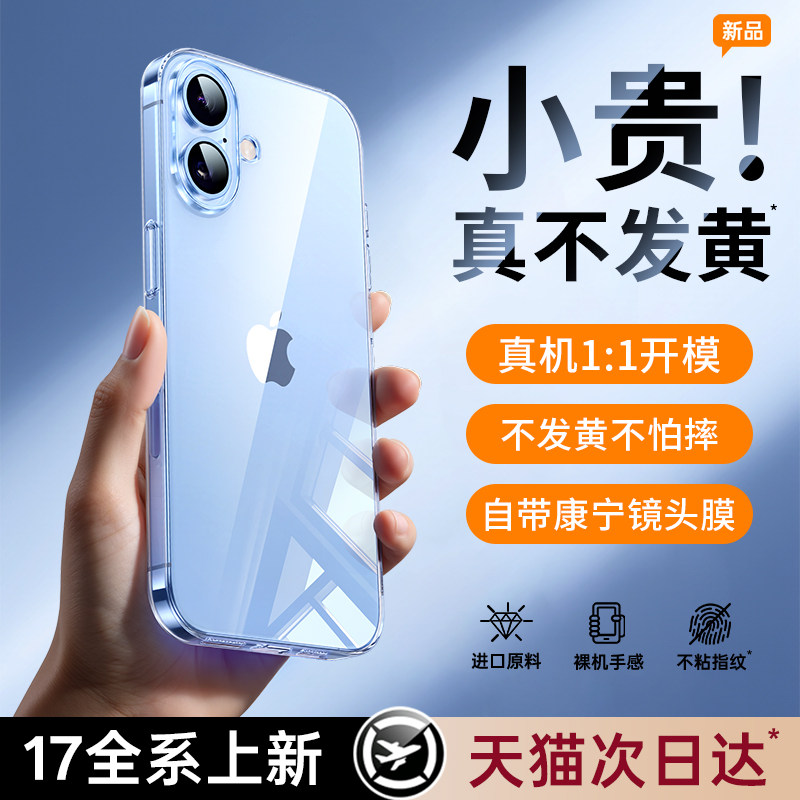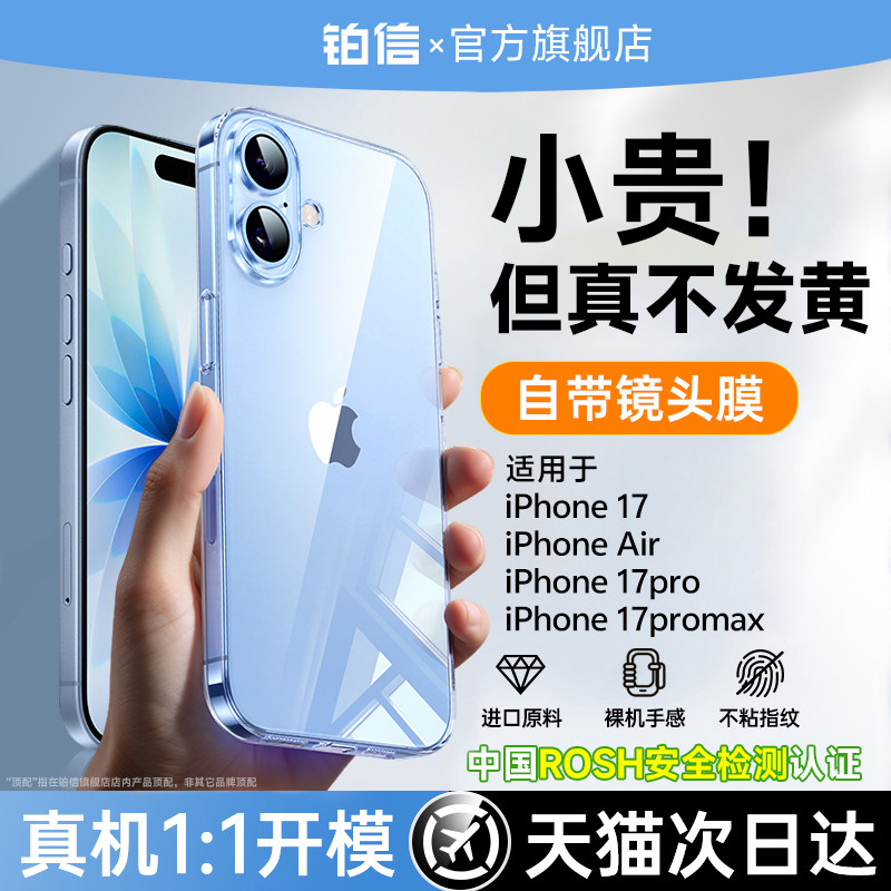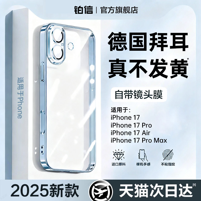 iPhone17Pro超薄防摔17Air透明16pm镜头全包15软14plus保护套13男12女 铂信适用苹果17手机壳新款 德国拜耳