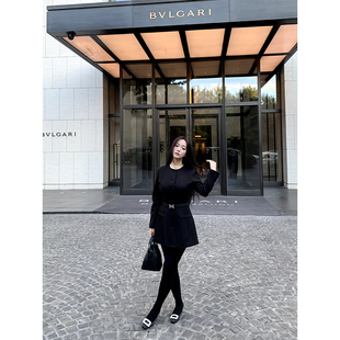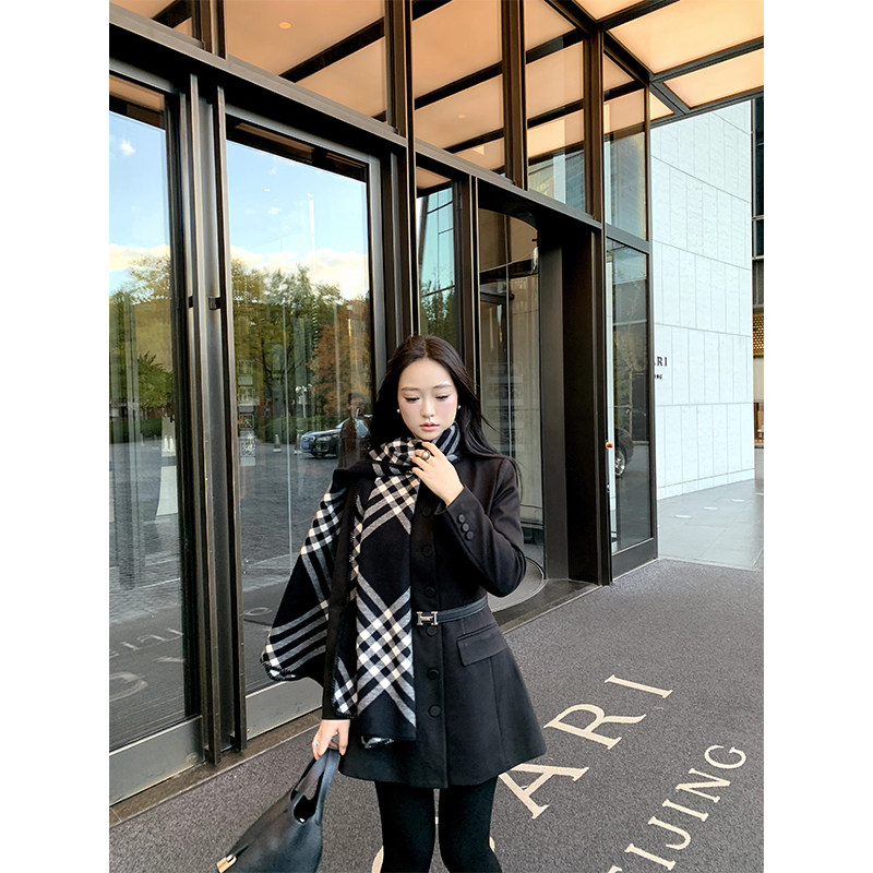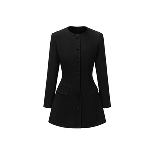 肉装 微胖毛呢外套女秋冬圆领高级感收腰呢子连衣裙 小cherry