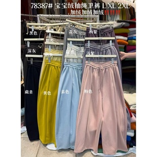 长裤 大7女装 胖mm休闲宝宝绒加厚抽绳阔腿卫裤 宽松大码 78387冬韩版