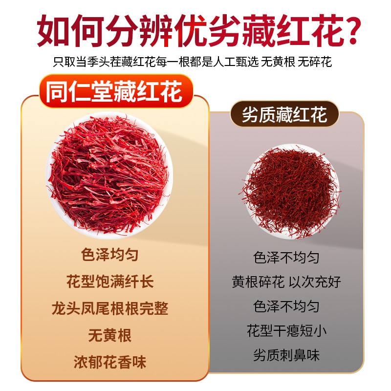 北京同仁堂藏红花官方旗舰店正品 西藏头茬特优级中药材女性泡水