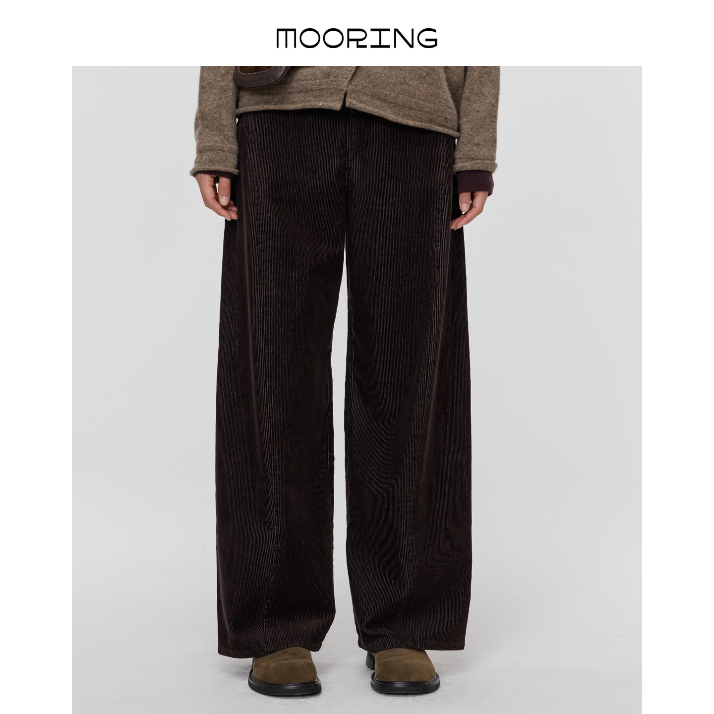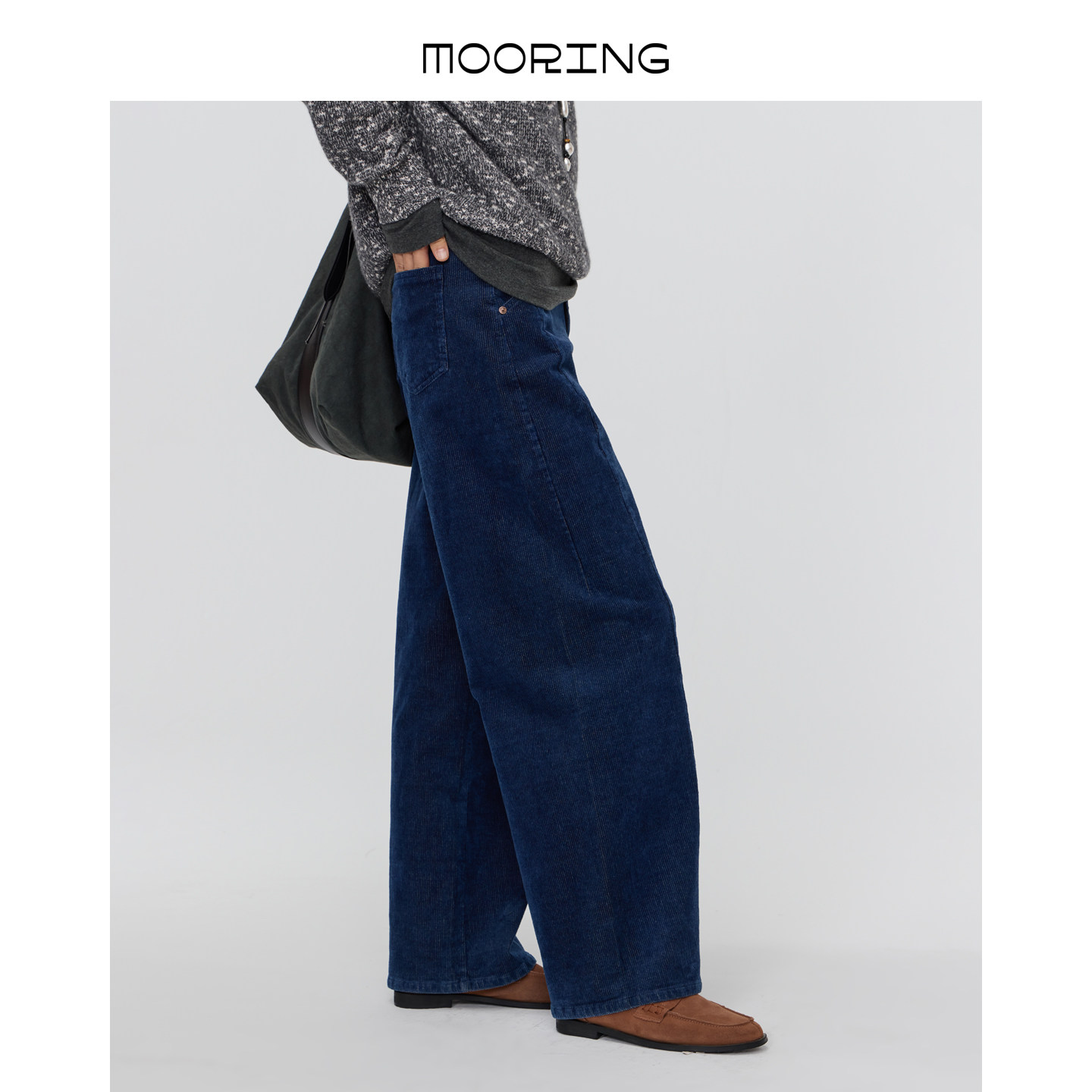 加厚休闲裤 MOORING泊复古蓝色灯芯绒裤 流行梧桐裤 冬季 子女直筒裤
