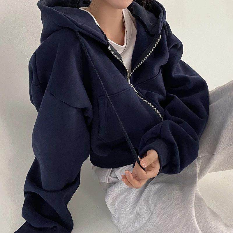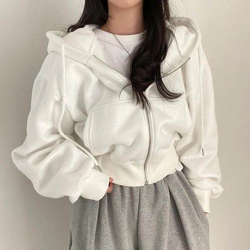 Sweatshirt 2023 Autumn Women Korean Hooded Winter Long Solid