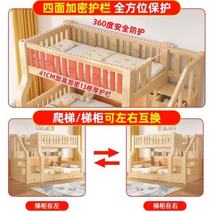 实木子母床高低床带储物抽屉上下床包安装 儿童床多功能