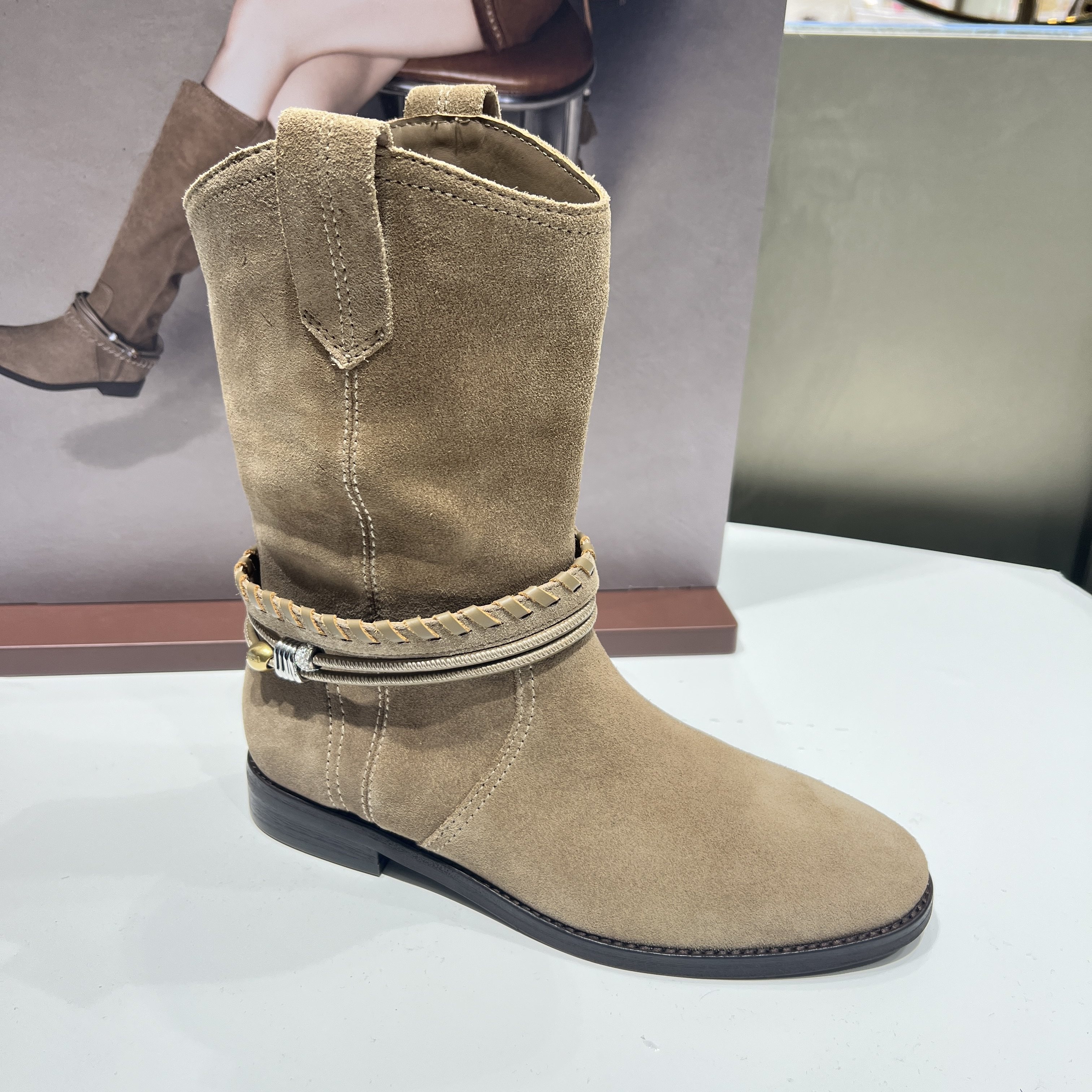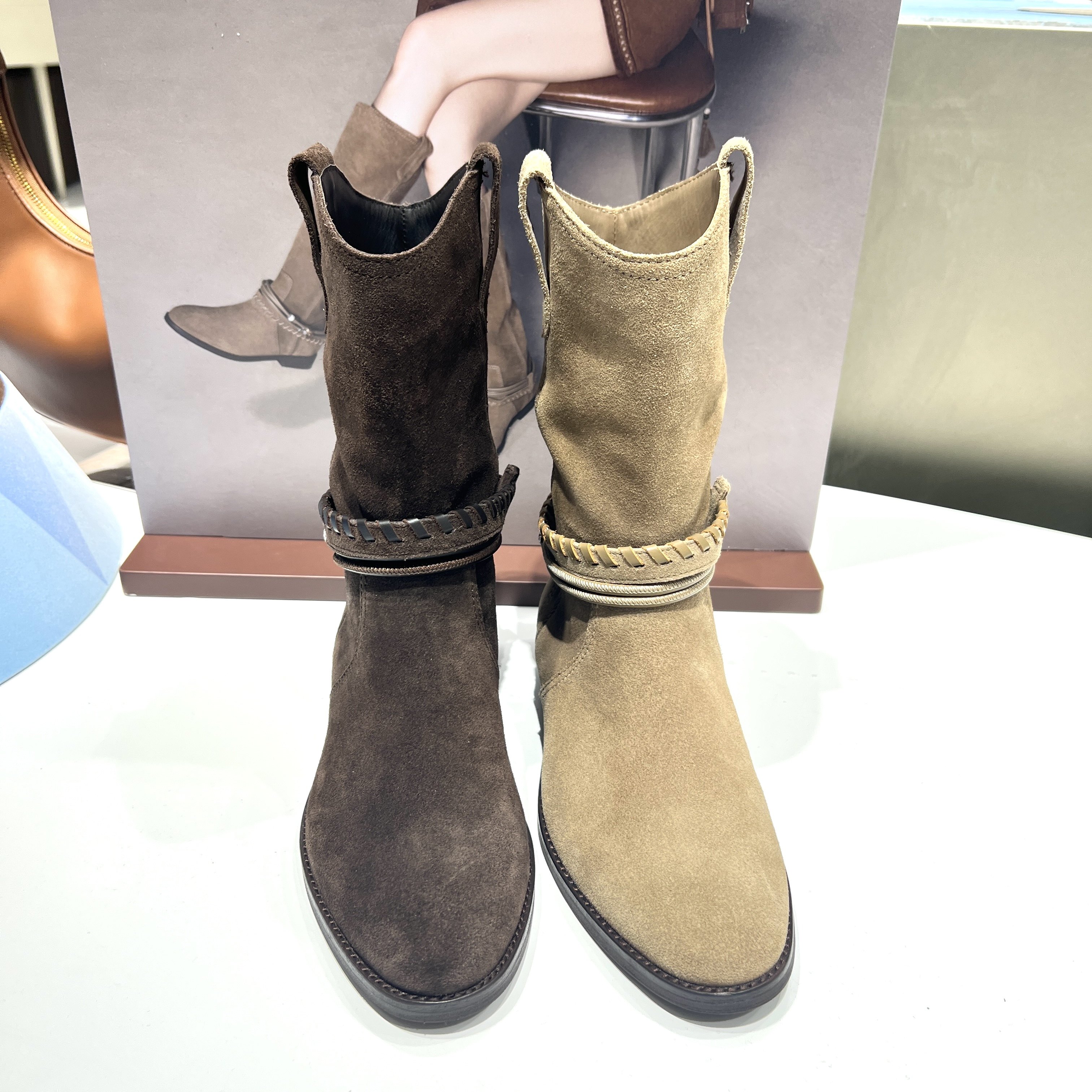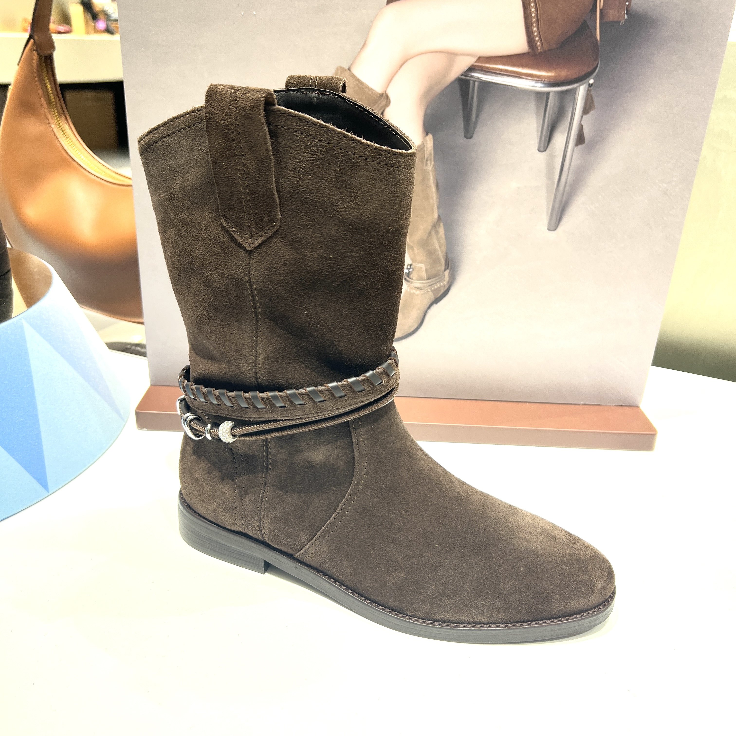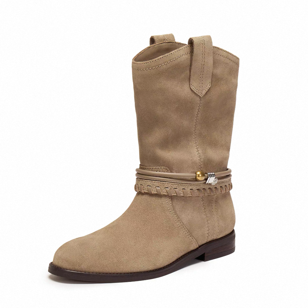 流浪牧歌复古西部牛仔中筒靴子EIL04DS5 新款 于文文同款 思加图冬季