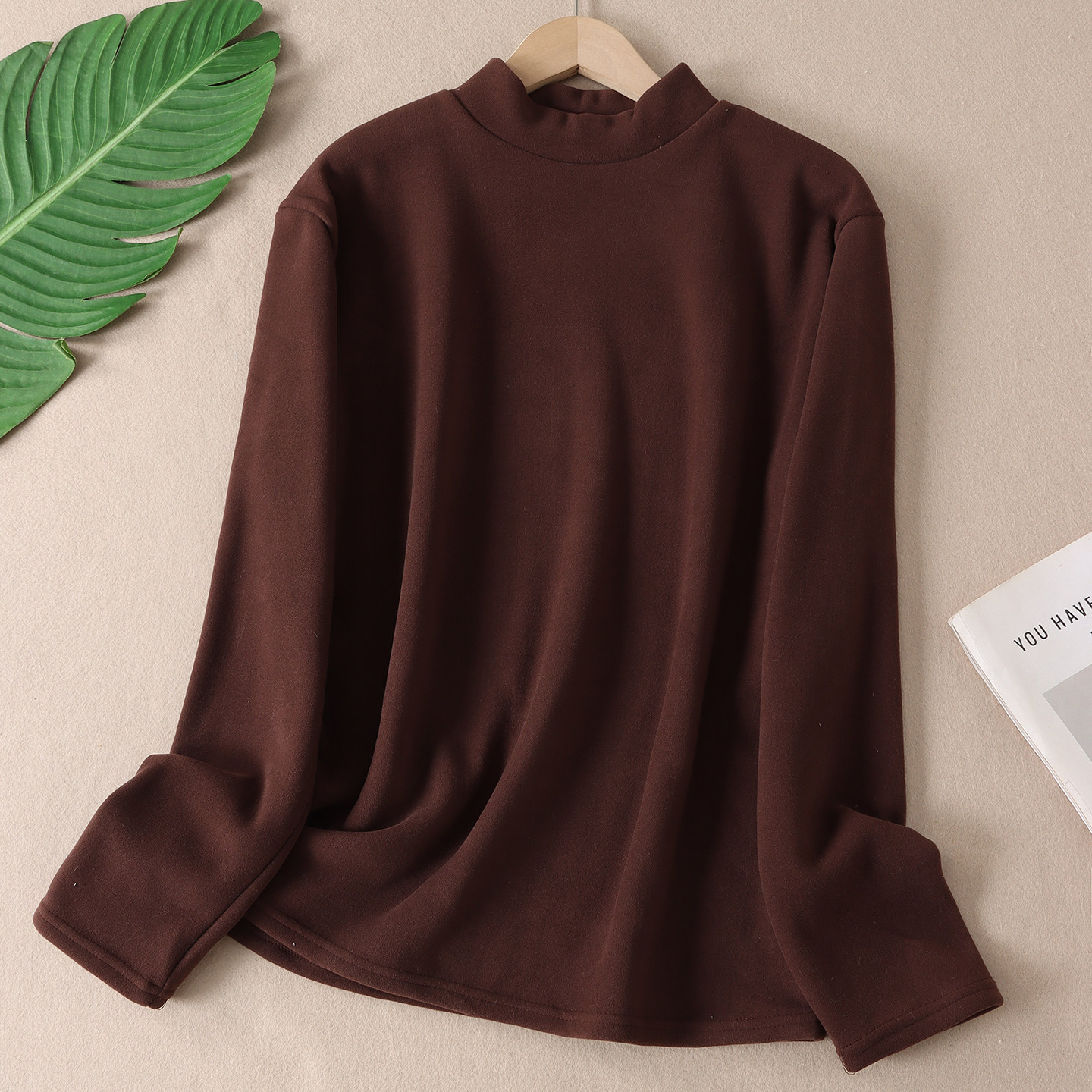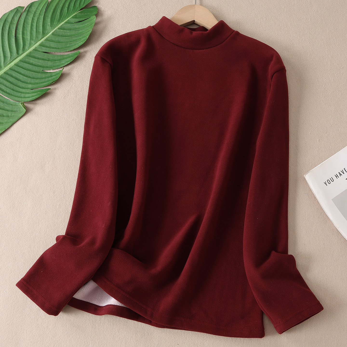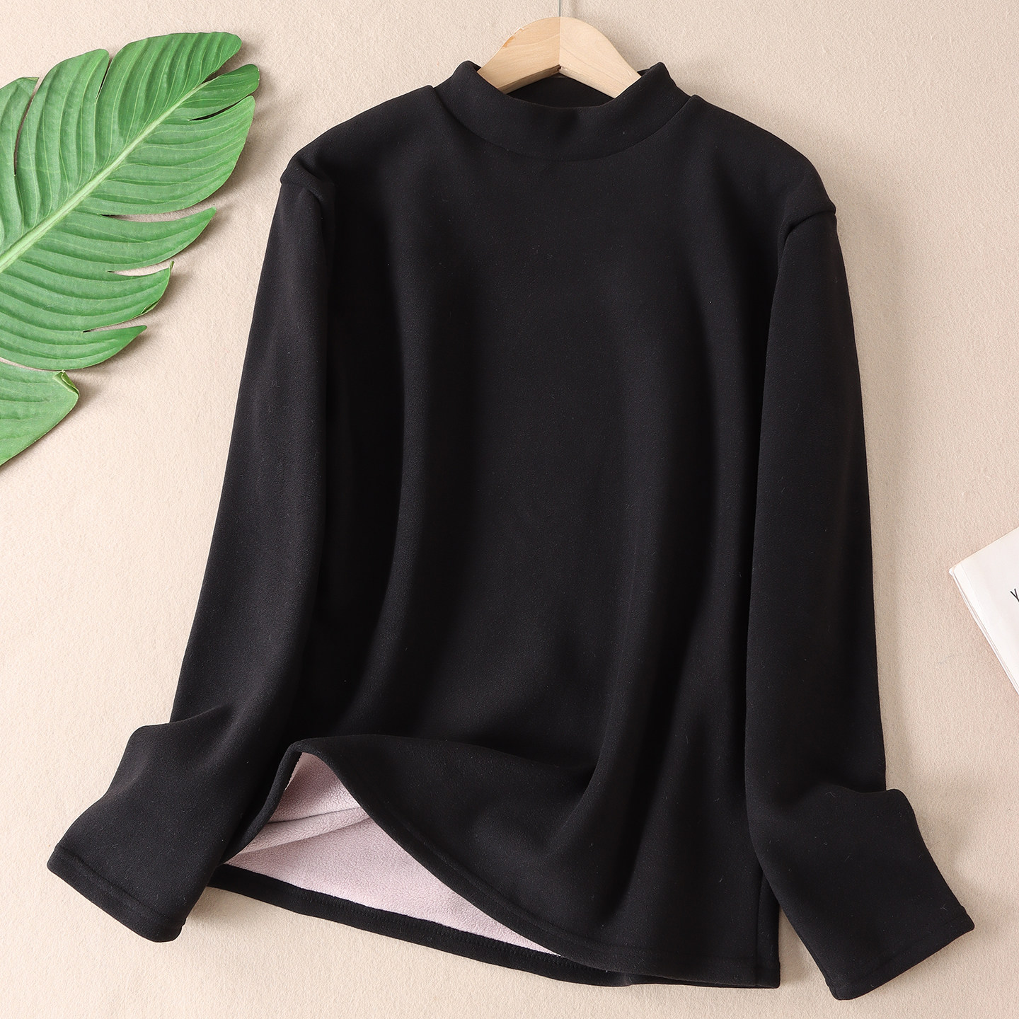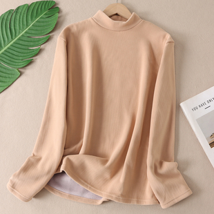 保暖叠穿纯色百搭t恤 女长袖 B97 加厚摇粒绒发热半高领打底衫 冬款
