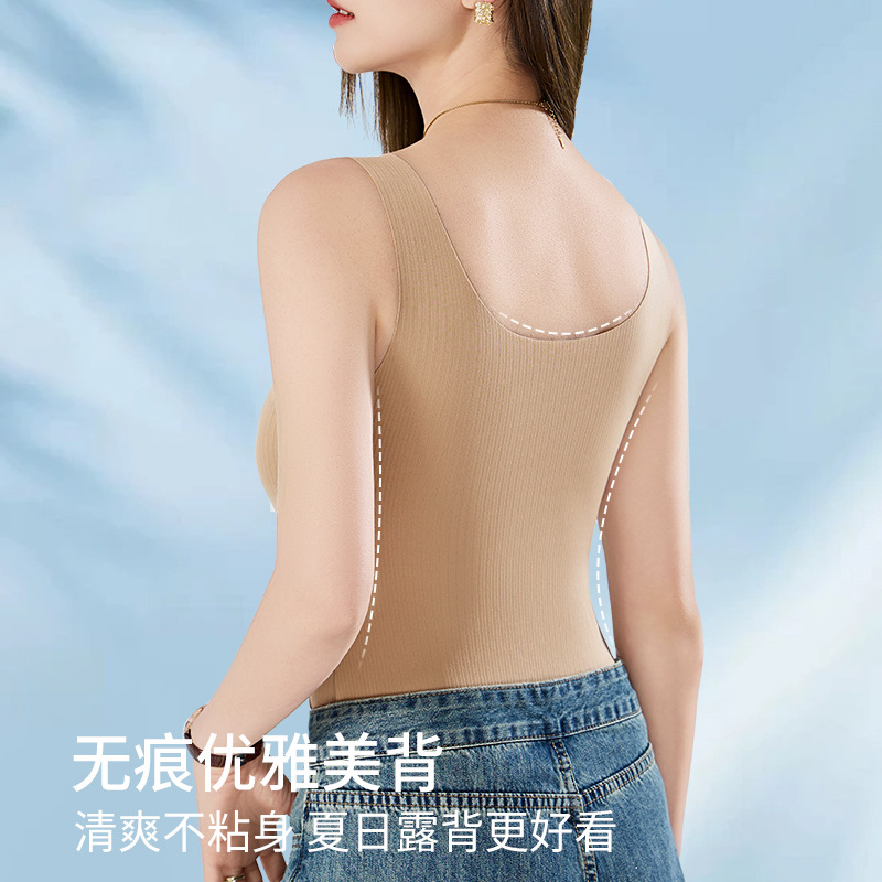 冰丝无痕外穿吊带背心女带胸垫美背内衣2025新款 上衣 打底内搭无袖