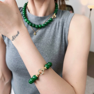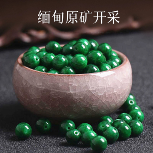 纯天然祖母绿干青种翡翠散珠帝王玉珠玉石铁龙生项链手链单珠念珠