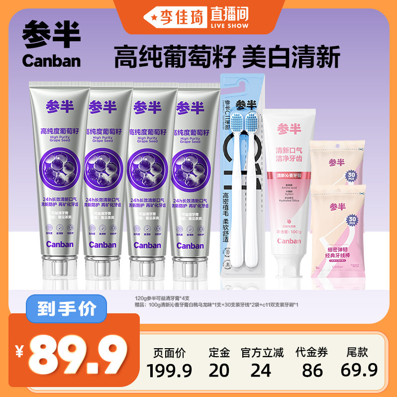 参半葡萄籽牙膏美白清新口气牙齿BD 李佳琦直播间