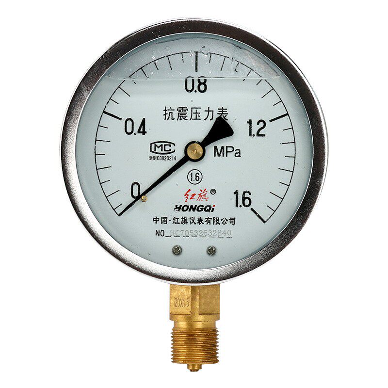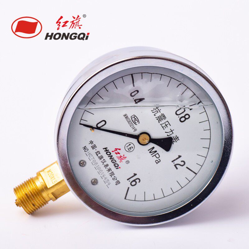 红旗仪表防震抗震压力表YTN 1mpa充油压力表1.6级100mpa 100耐震0
