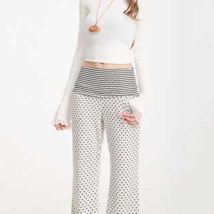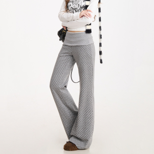 休闲裤 NERESUM波点满印微喇裤 复古辣妹高腰显瘦修身 美式 子女卫裤