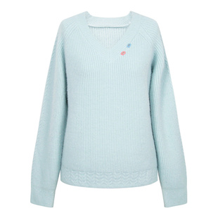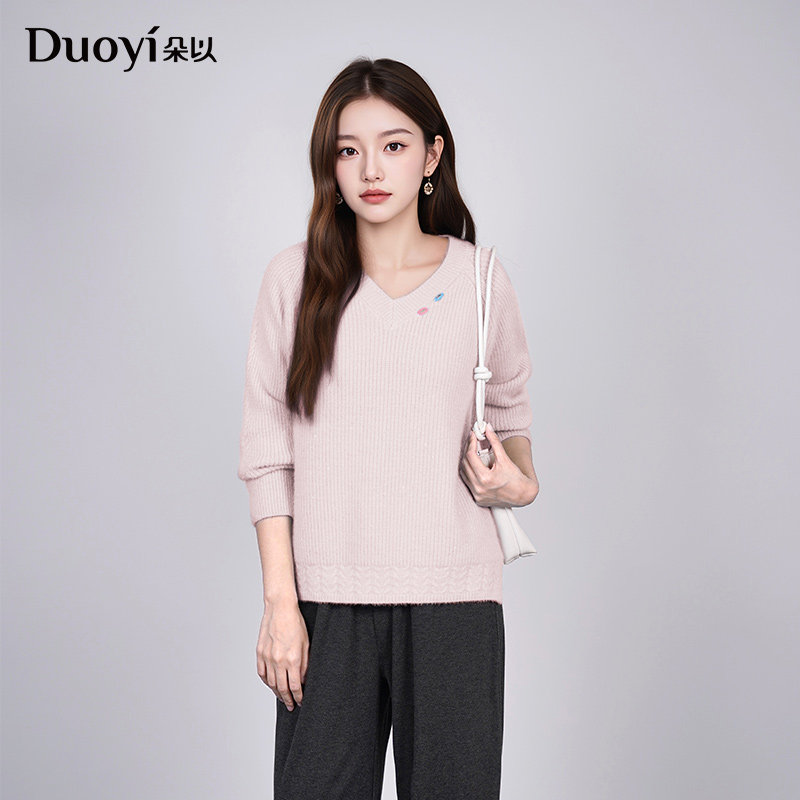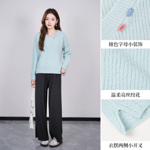 亮丝针织衫 温柔慵懒风V领麻花毛衣开叉插肩袖 新款 朵以2025冬季