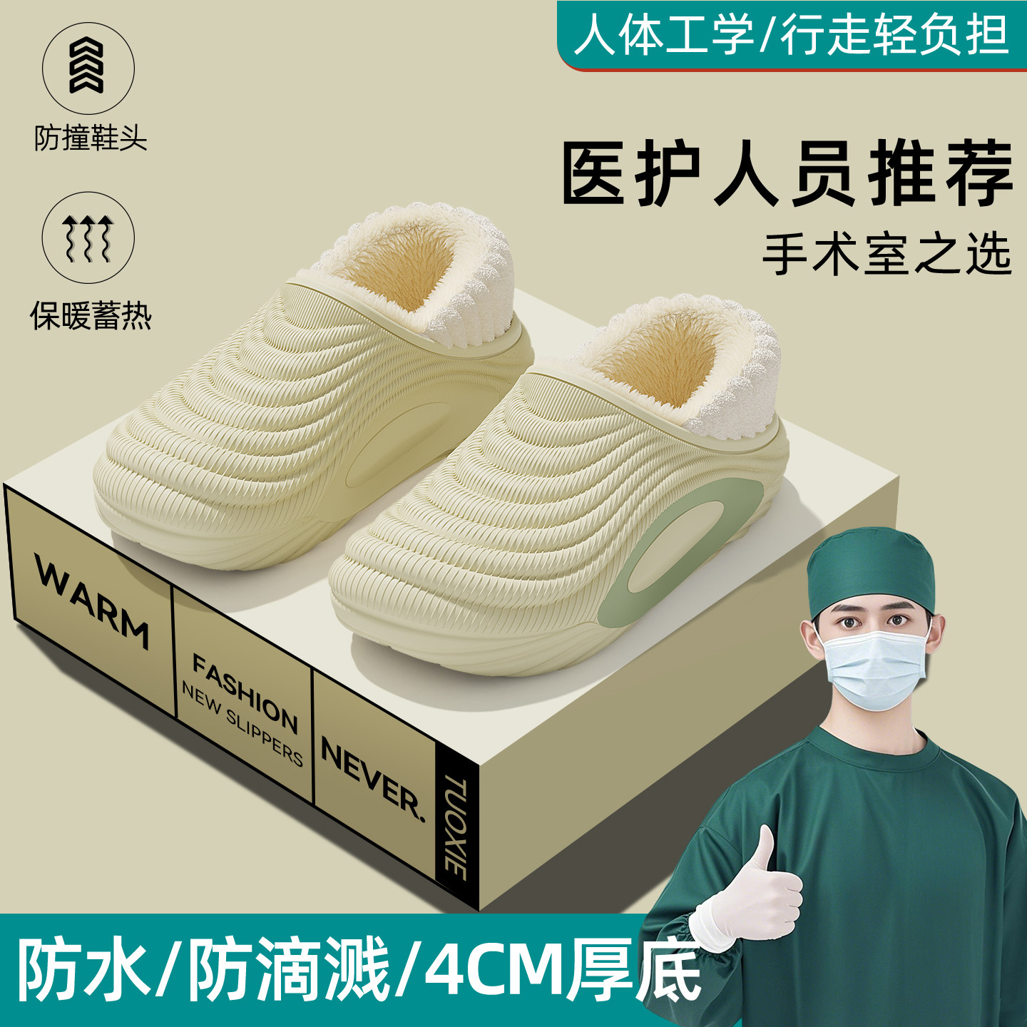 室内家居加毛绒保暖防滑防水包头拖鞋 棉拖鞋 2025新款 冬季 女士 女款