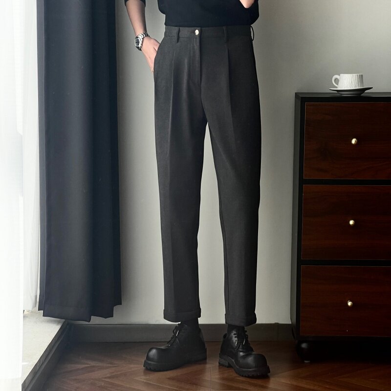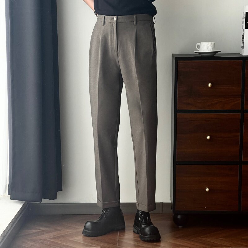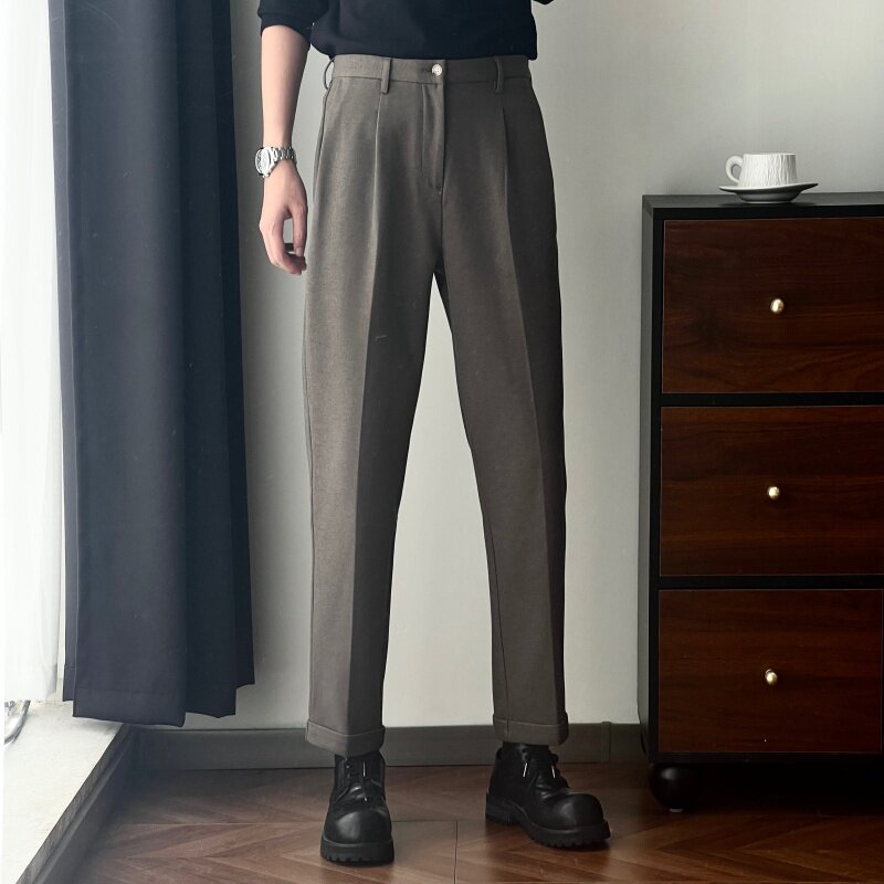 垂感毛呢裤 男宽松休闲裤 子九分裤 西裤 裤 秋冬款 潮流高级感西装 男款