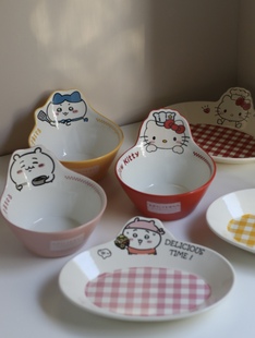 吉伊卡哇陶瓷面碗餐盘chiikawa吉伊小八可爱饭盘饭碗汤碗家用碗盘
