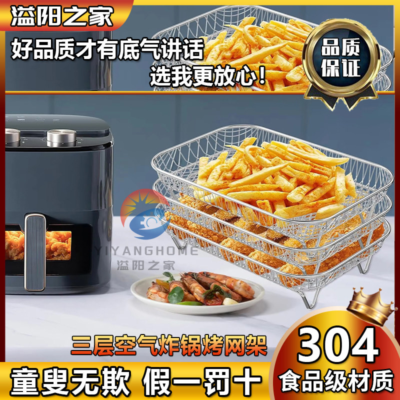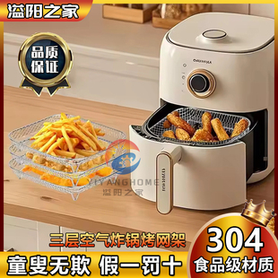 正宗304不锈钢三层方形空气炸锅烤架家用烤箱BBQ烘焙烧烤网架蒸架
