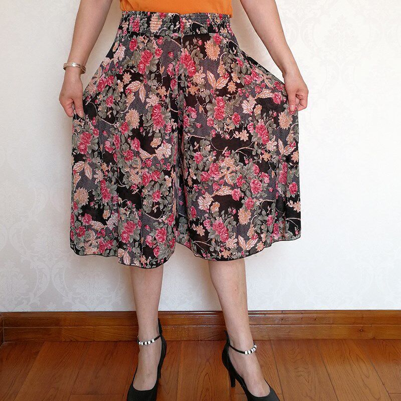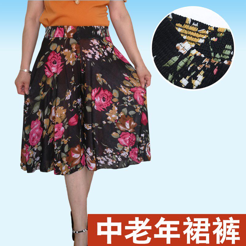 妈妈装 松紧腰宽松中裤 中老年女装 夏季 中年妇女裙裤 五分阔腿裤 夏装
