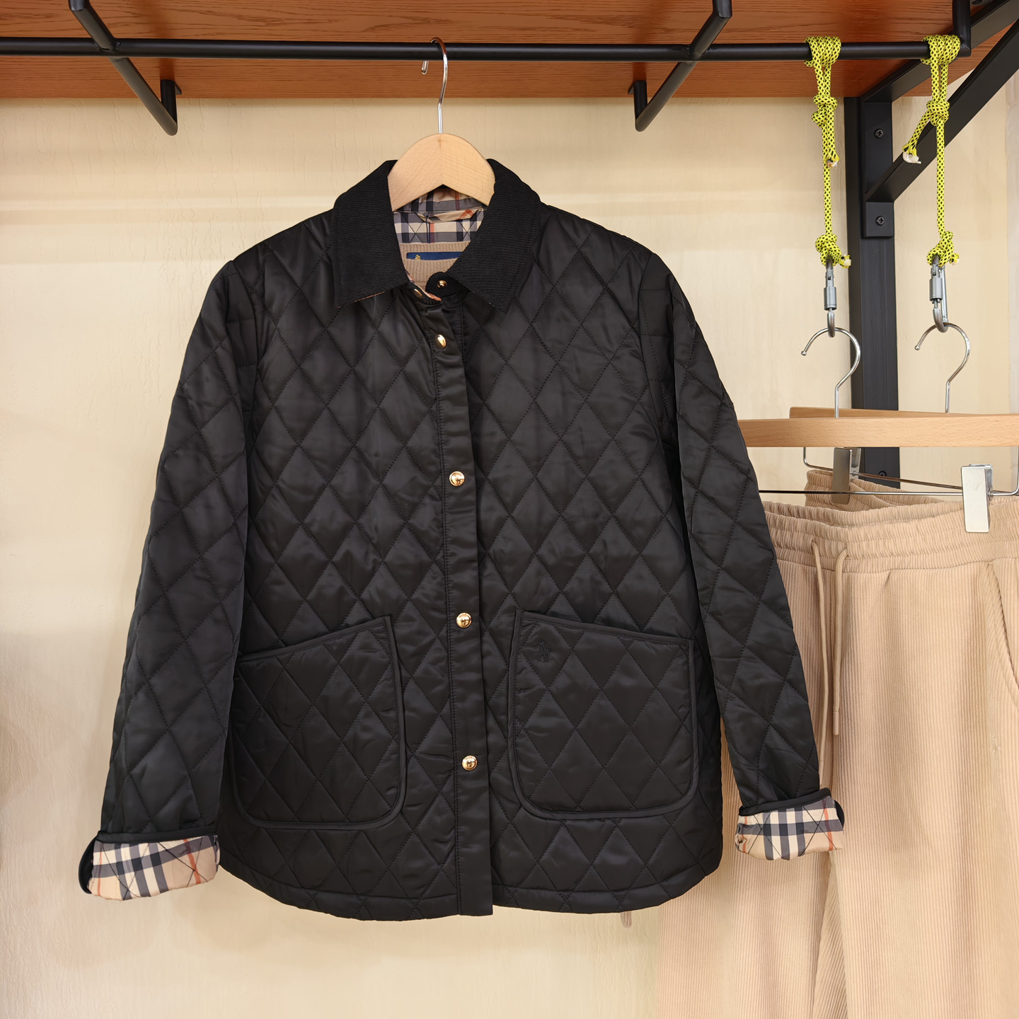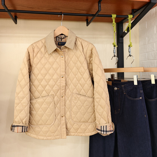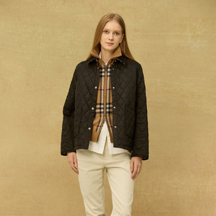复古菱形格夹棉外套200斤 女装 胖mm冬季 巴恩翻领棉服木子理想大码