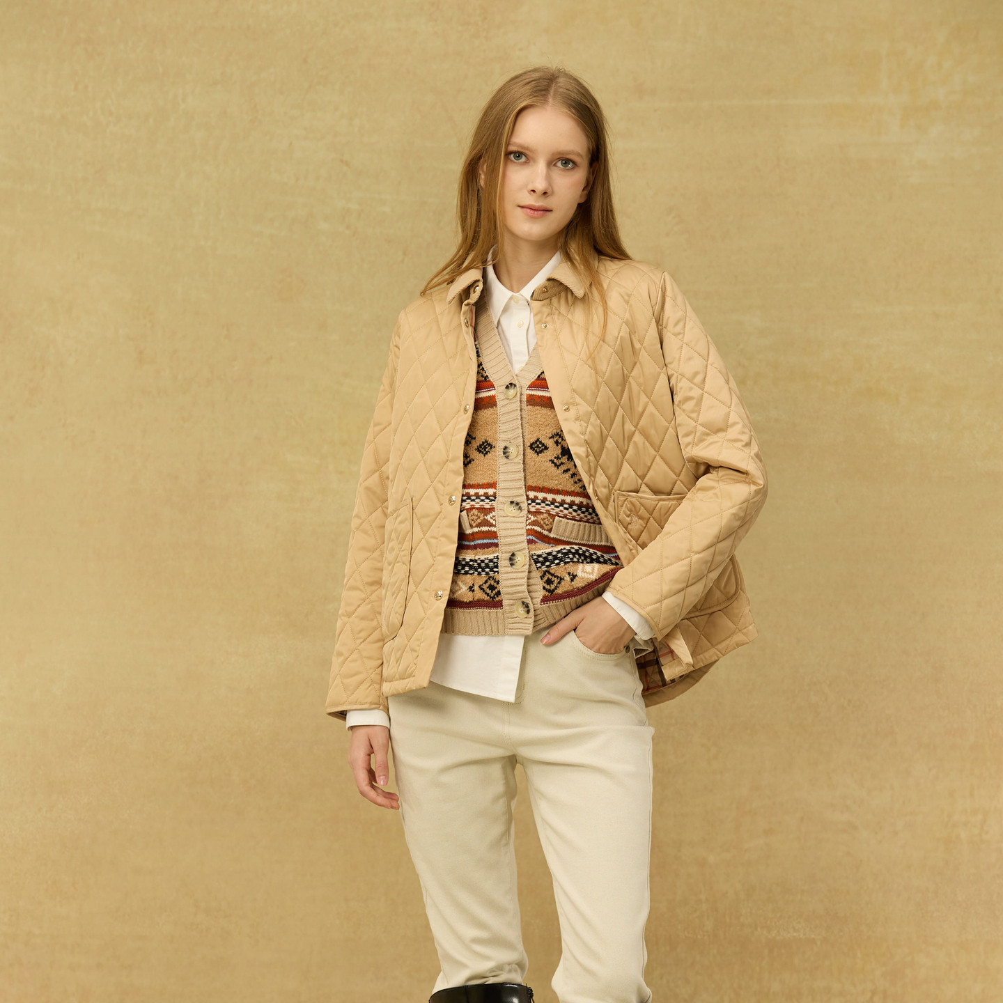TUDOU土豆猫费尔岛羊羔绒加绒外套女宽松2025年新款 保暖棉衣 冬季