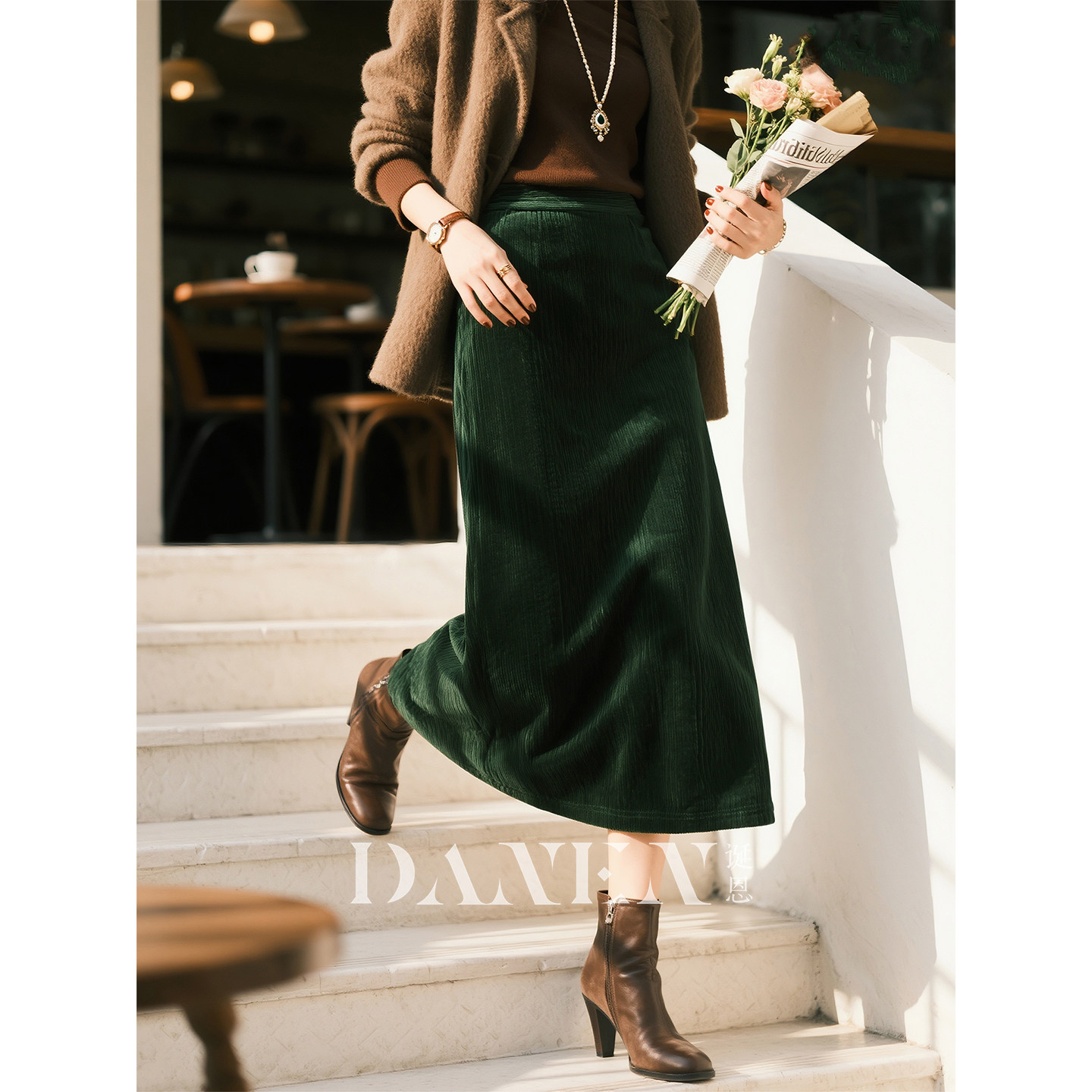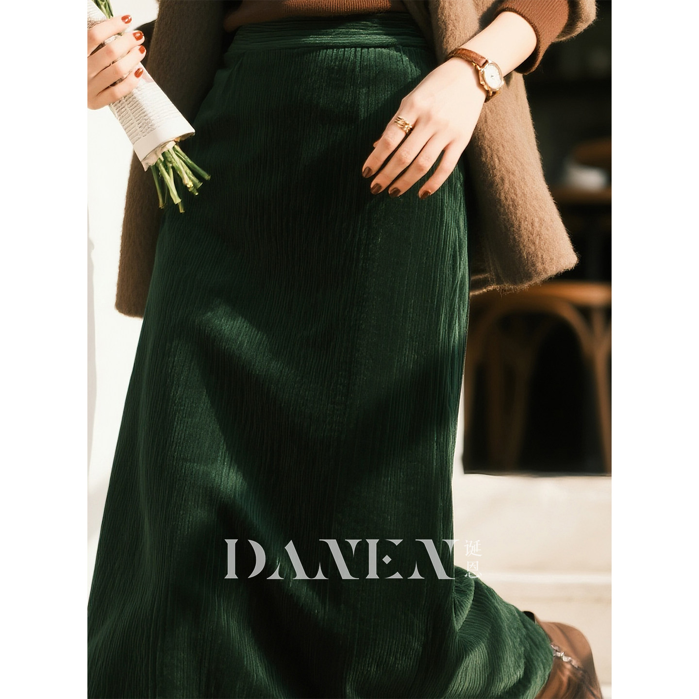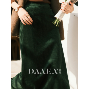 墨绿色灯芯绒半身裙女2026秋冬新款 气质直筒裙百搭显瘦A字裙 法式