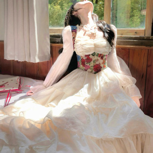 在逃公主宫廷风油画礼服春秋新款 轻奢蛋糕裙高级感仙女生日裙 法式
