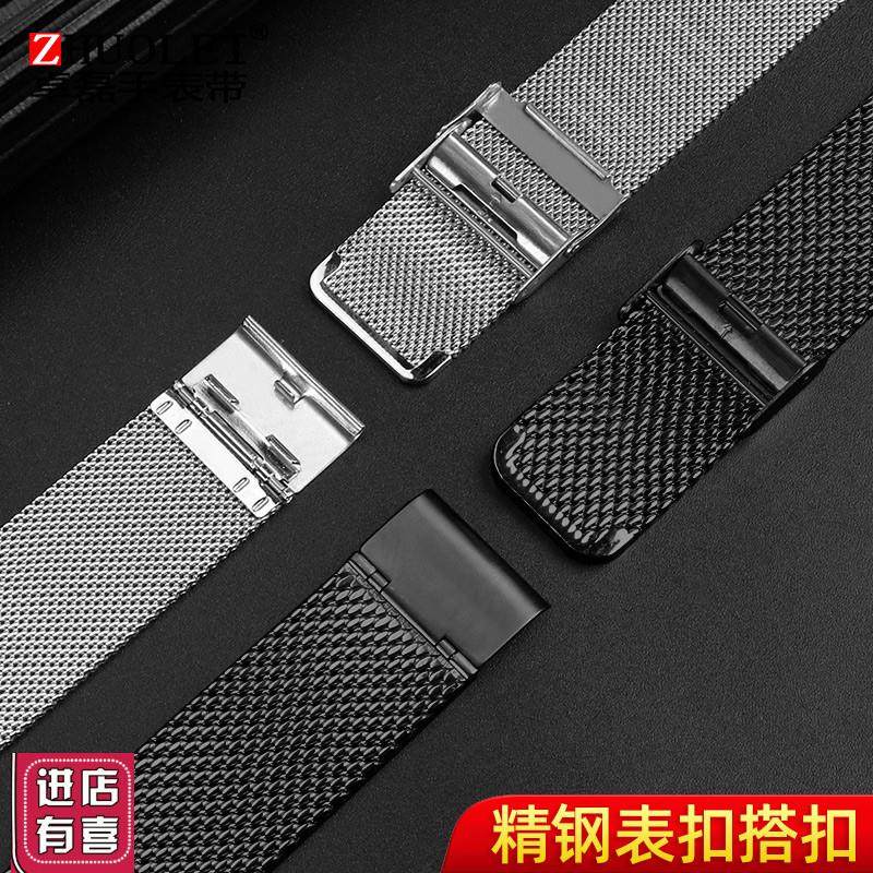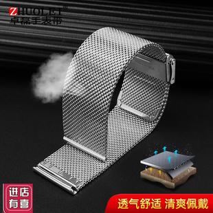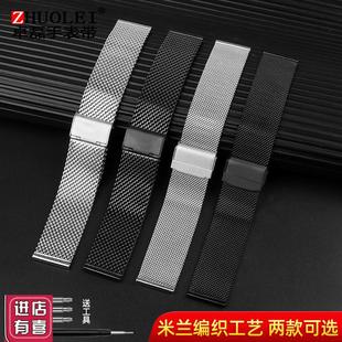 网带编织表带适用精工罗西尼CK天梭力洛克万国男黑色X不锈钢手表