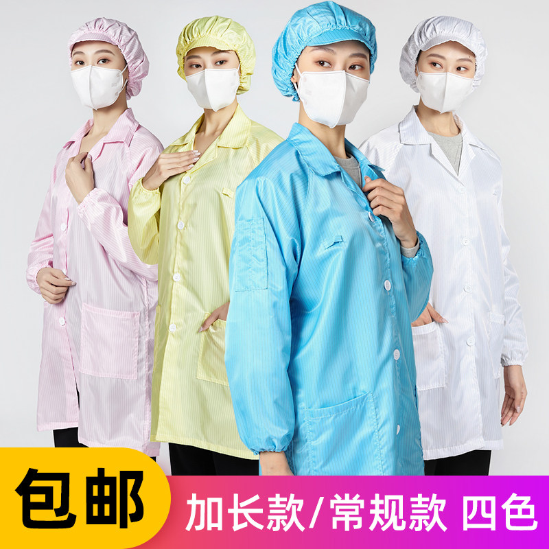 静电衣加长款 防静电服工作服蓝色白色大J褂工衣车间电子厂无尘服