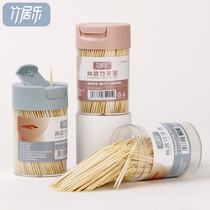 茶花一次性竹牙签家用超细便携式 牙签盒双头尖细竹制剔牙清洁竹签