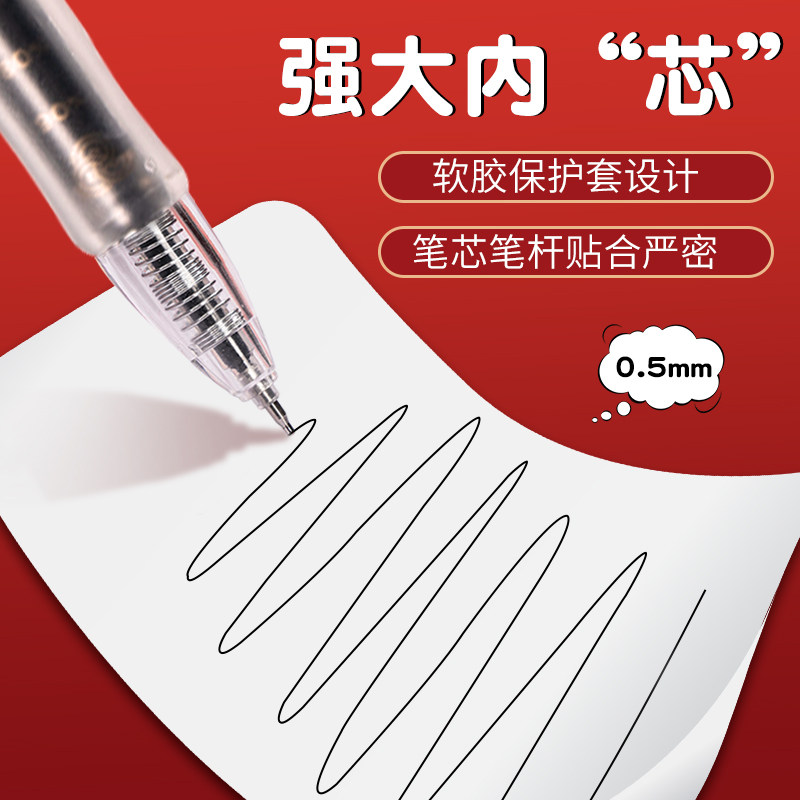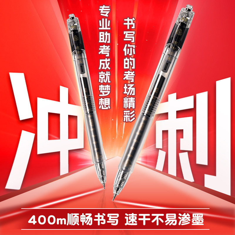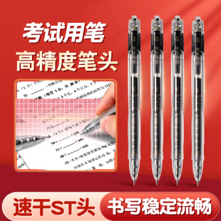 得力V1S连中三元 按动中性笔考试专用0.5速干st黑色碳素笔签字水笔