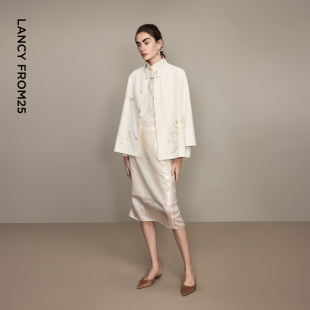 新款 刺绣盘扣外套气质通勤2026年春季 朗姿羊毛新中式 女 兰亭叙