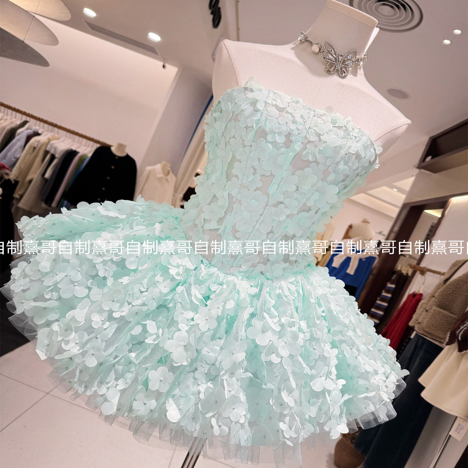 法式 甜美花朵抹胸蓬蓬裙绝美超仙公主风气质短裙小个子轻奢礼服裙