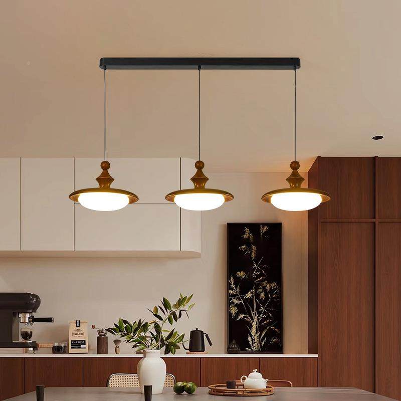 BDQ中古风餐吊灯三灯头实木岛室台茶长条复古新中式 书房胡桃色厅