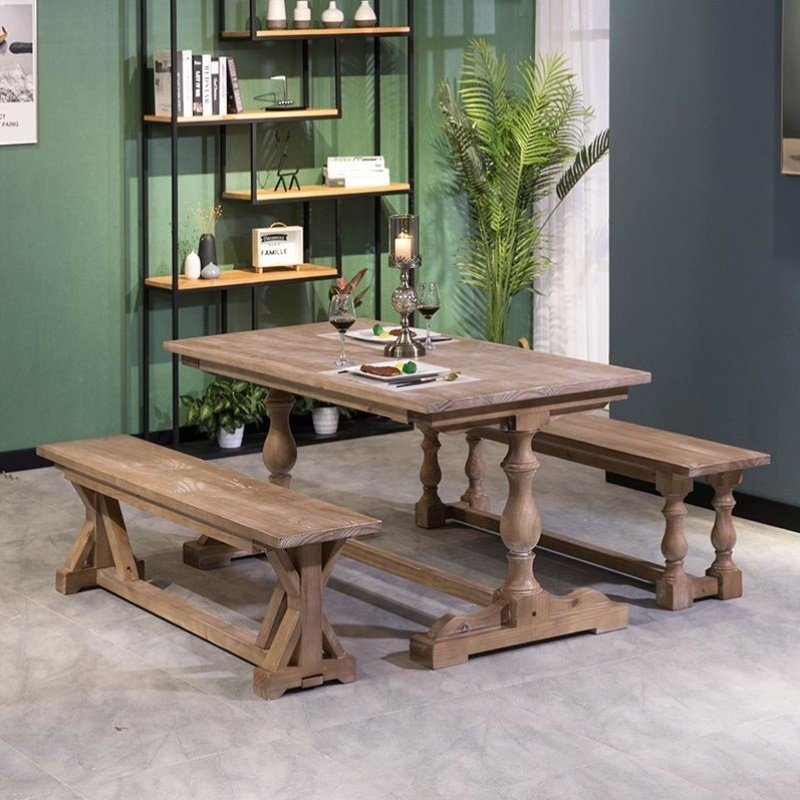 包豪斯实木岩板餐桌2025新款 复古家用小户型中古风餐桌椅 洞石法式